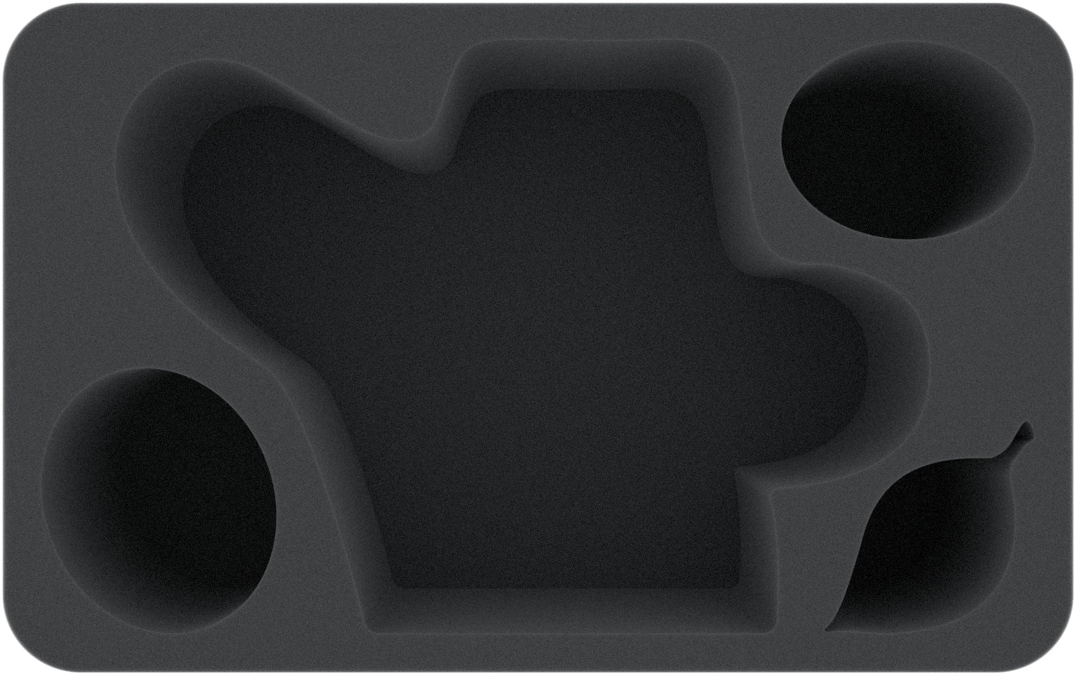 2 ovale und ein blattförmiges Fach vervollständigen die Schaumstoffeinlage und bieten Platz für 3 weitere Miniaturen oder Spielmaterial.