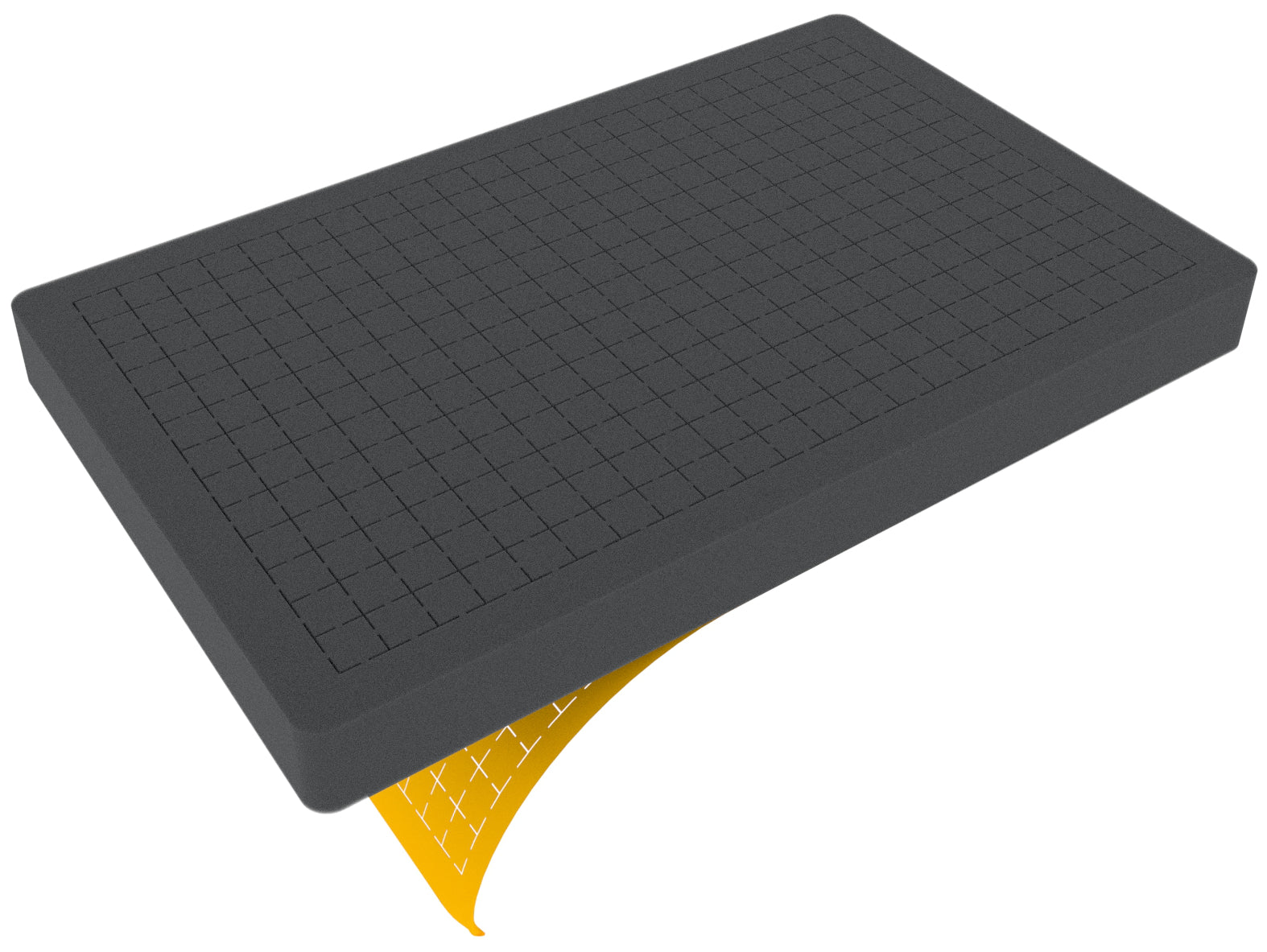 The Pre-cubed foam is completely die-cut over the entire height. The foam base is available separately. To ensure the optimal protection of the packaged goods from below, we recommend using a 10 mm strong foam base like article IGBA010 (available separately).