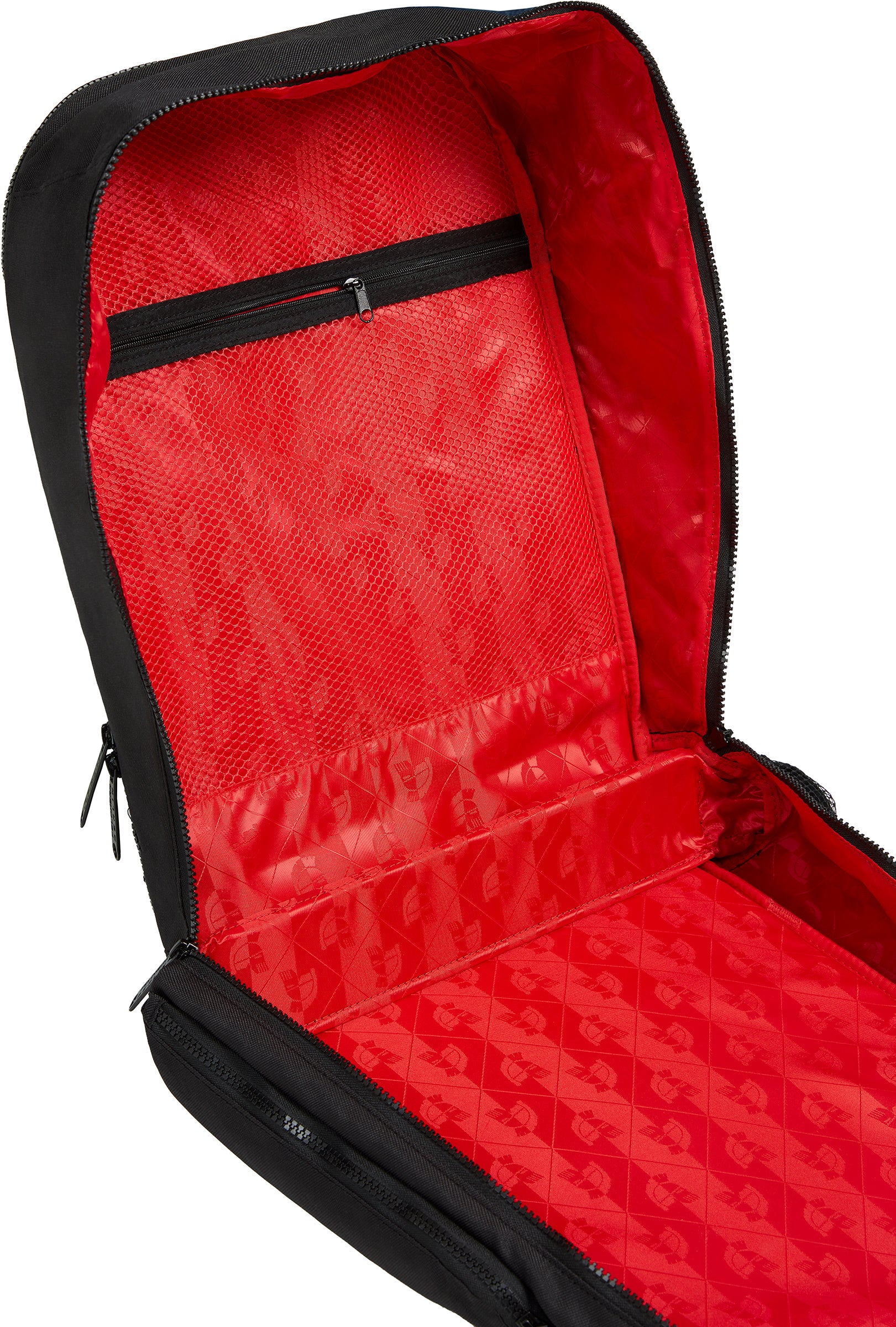 The Backpack is made of light-weight yet durable materials and features a breathable mesh padding. To simplify loading and unloading of the Backpack, the zipper opens wide to three sides. Thereby, the bag can be opened almost completely. The bottom and back are reinforced with PVC inserts for additional protection.