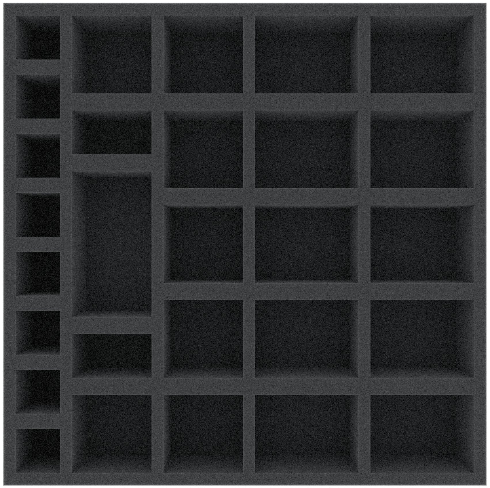 Foam tray with 28 slots for many original board game boxes. The 28 different slots own yourself for everything imaginable game material.