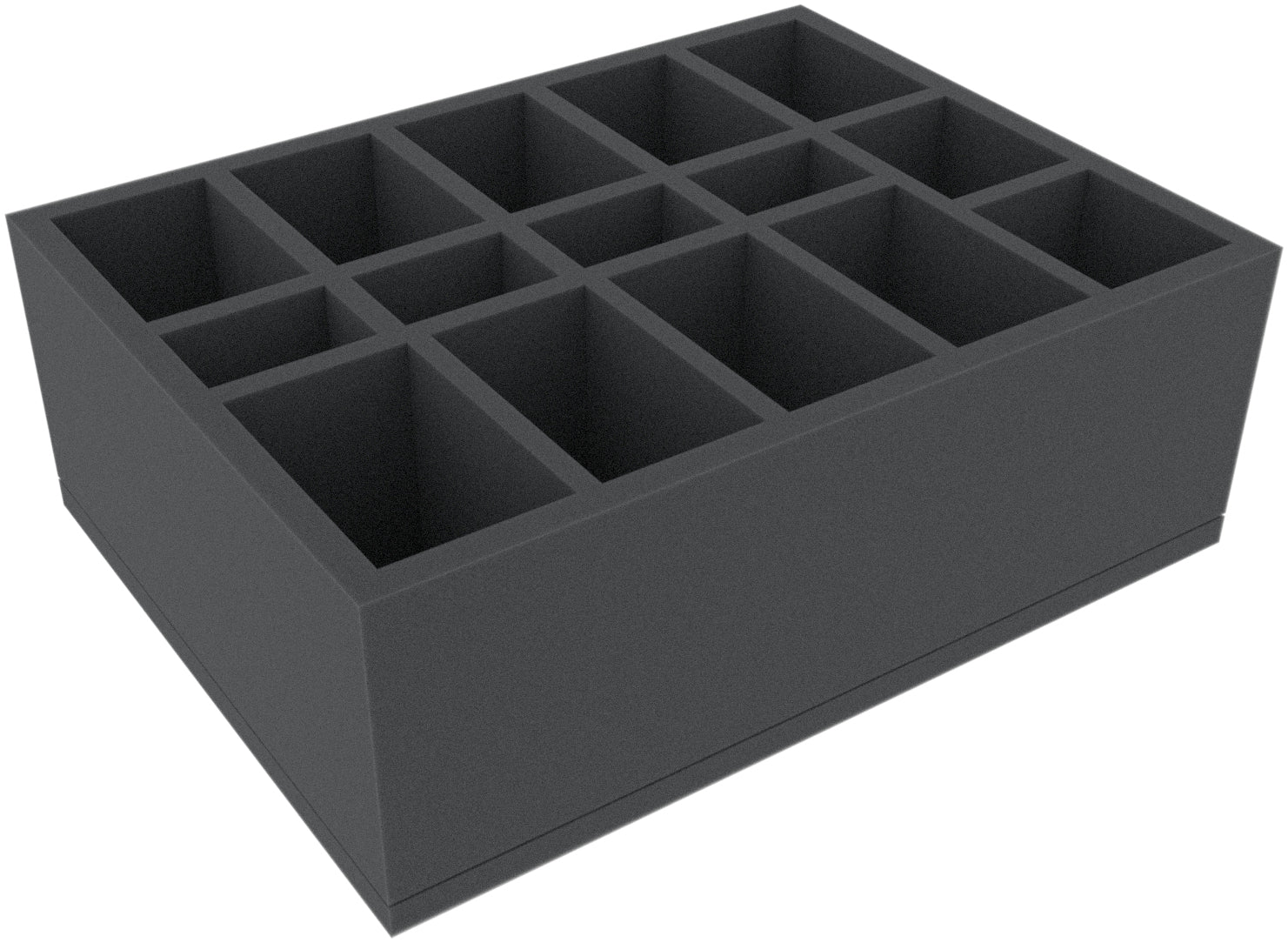 This 100 mm high foam tray is divided into 15 compartments. It is particularly suitable for the safe storage of tabletop and board game miniatures, as well as other fragile models and small parts.