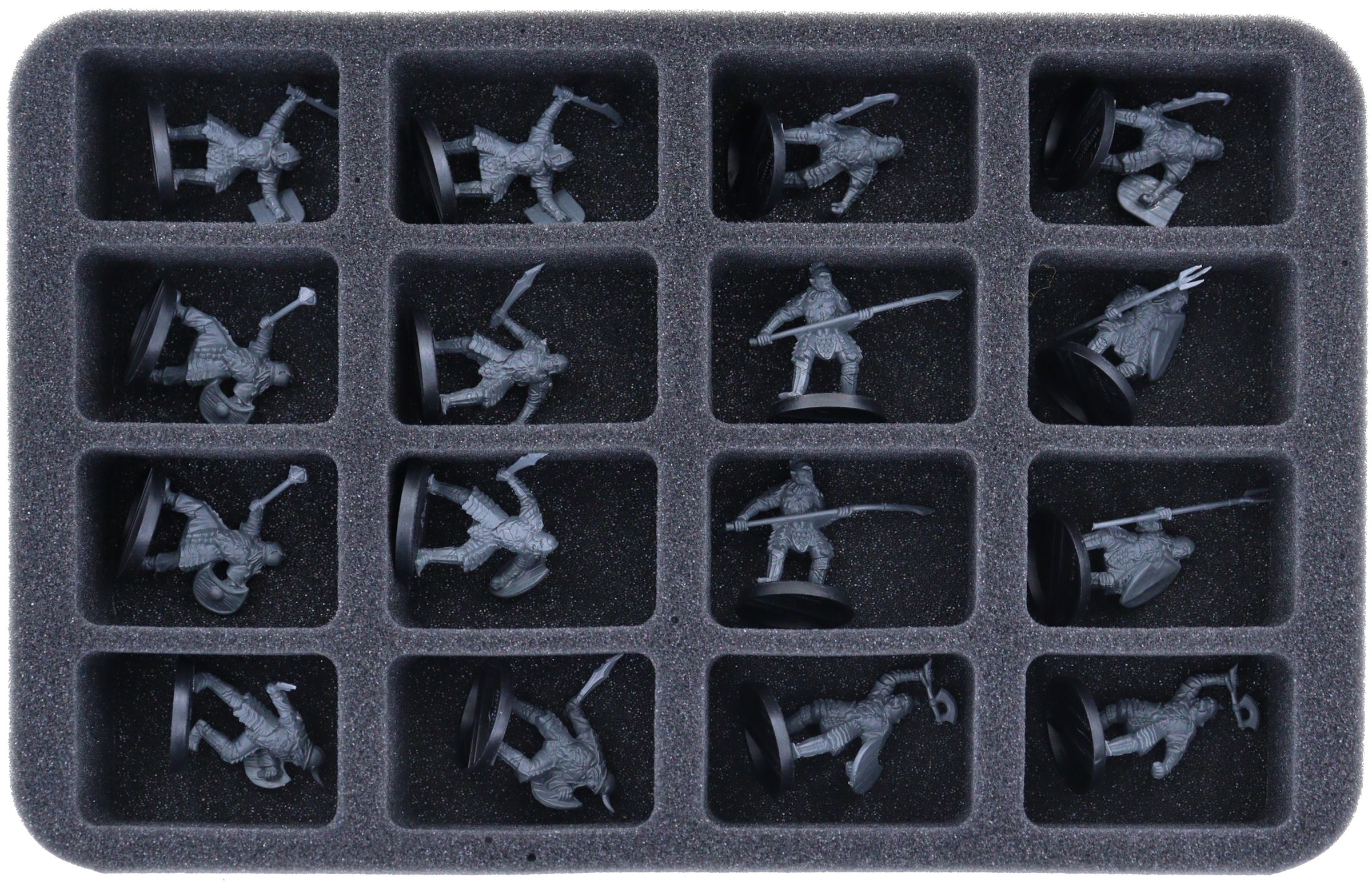 - 2 Half-Size foam trays with sixteen compartments for Faramir, Damrod, Madril, Warriors of Minas Tirith, and Rangers of Gondor (HS040BF05BO)