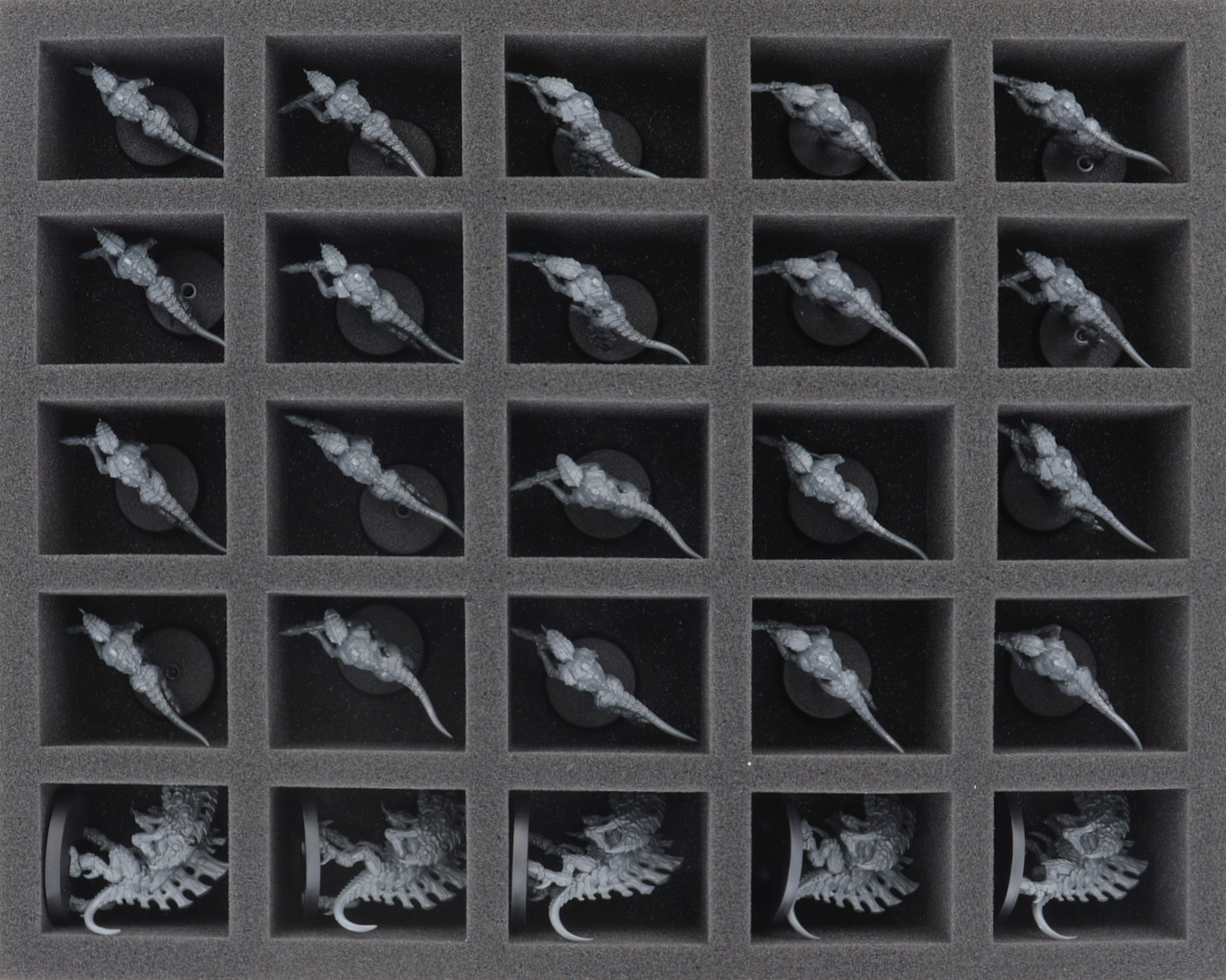 • 1 Full-Size foam tray with 25 compartments for Termagants, Barbgaunts, and miniatures of similar dimensions (FSLQ050BO)