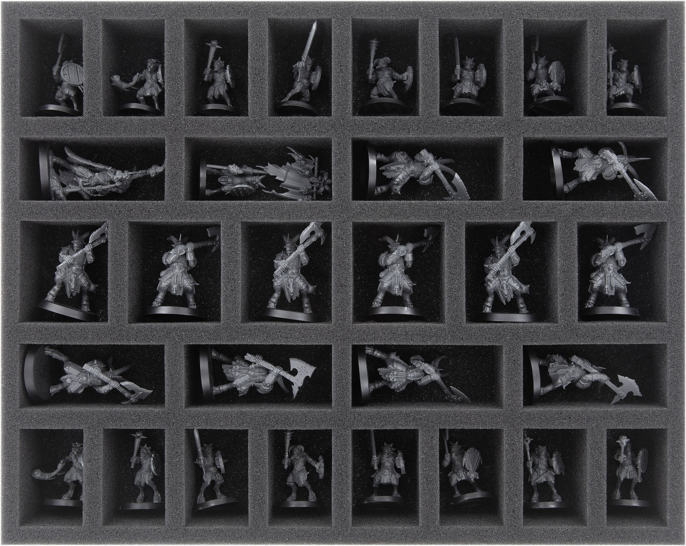 Two foam inserts offer space for up to 64 classic warrior and monster miniatures on round or square bases up to 35 mm.