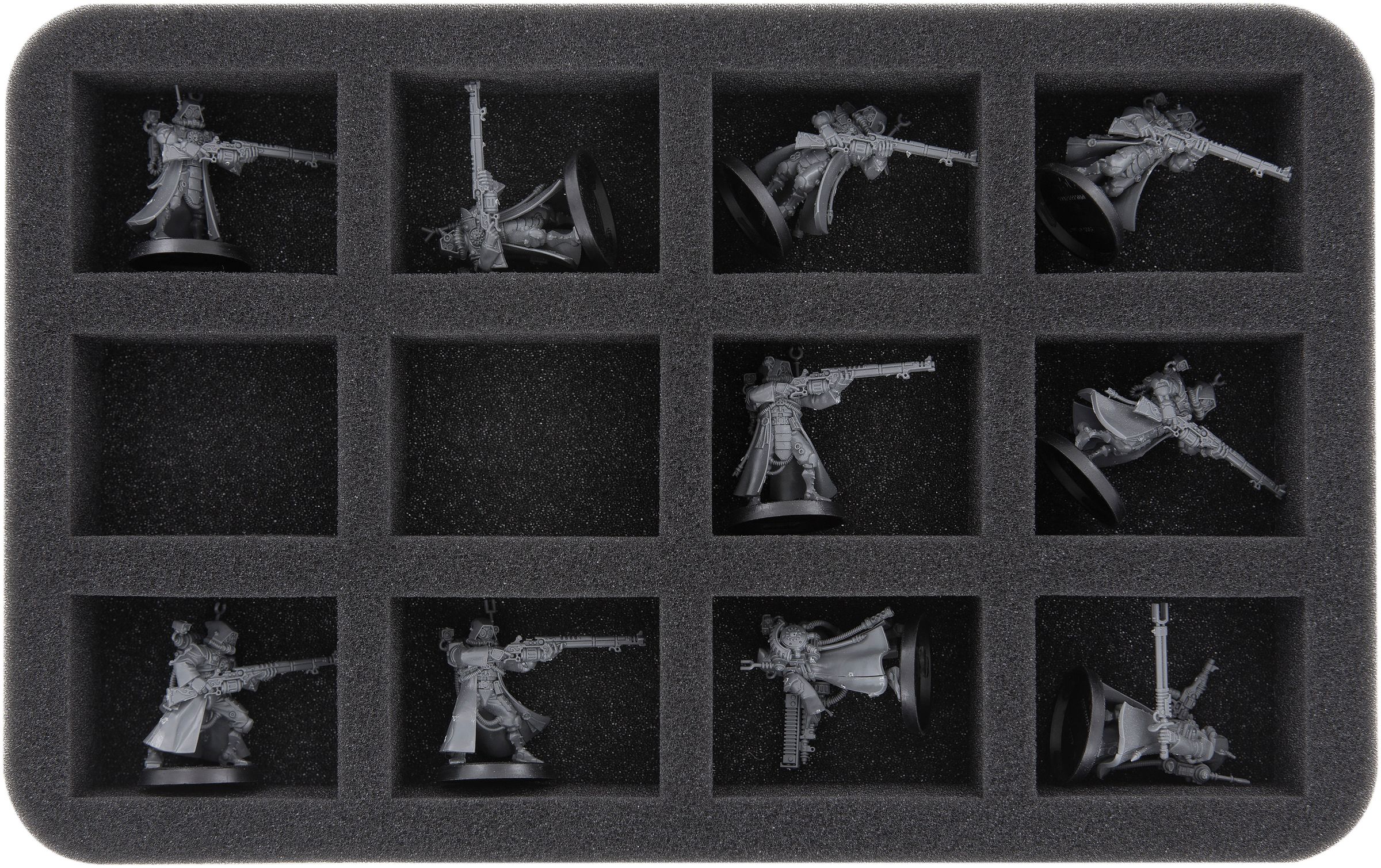 The tray HSCT060BO has 18 compartments and is ideally suited for Skitarii. The long compartments provide enough space to accommodate even the Rangers with Transuranic Arquebus.