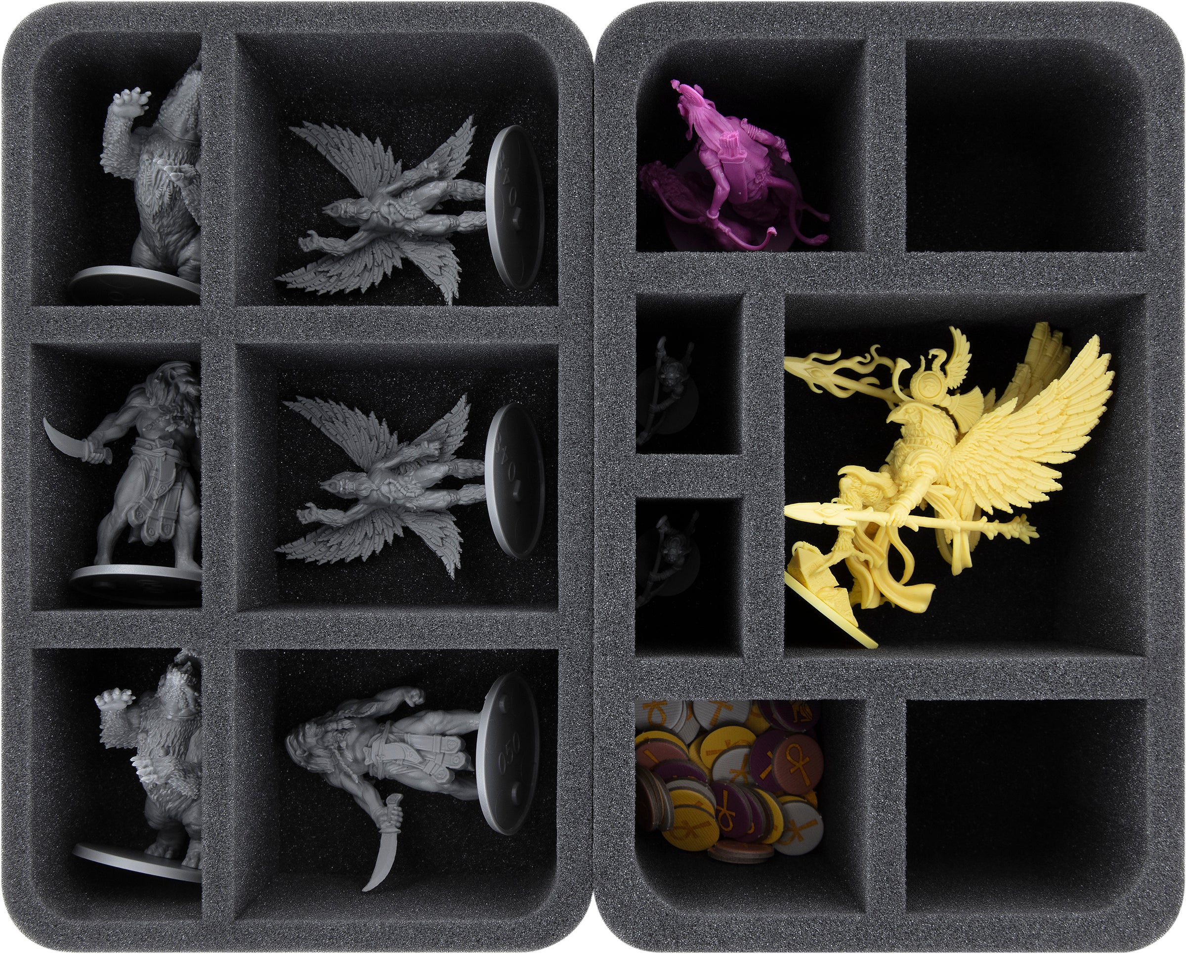 No matter whether it is the winged Horus, the cunning Bastet, or a simple warrior. Each figure gets a matching compartment. The soft, fine-pored foam protects delicate parts from breaking off, and the colors of your painted models are safe from ugly scratches and chipping paint.