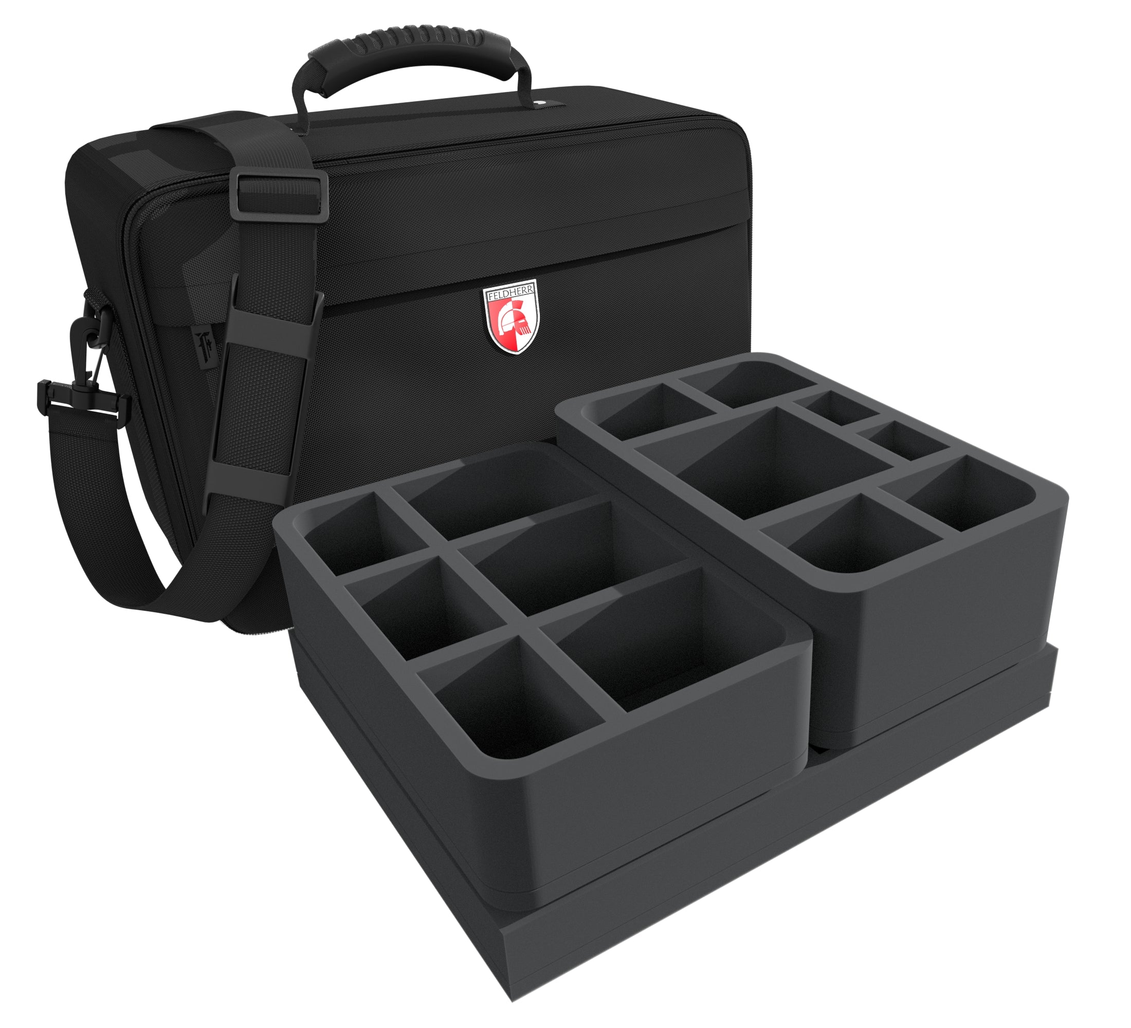 5 Gods, 30 Warriors, 11 Guardians, and the accompanying game material want to be packed this time. Luckily we have the matching MAXI bag with custom Feldherr foam trays ready. With it, you can safely transport all the miniatures and game material to the next battle. With room for the Kickstarter exclusive cat pawns and Horus tokens.