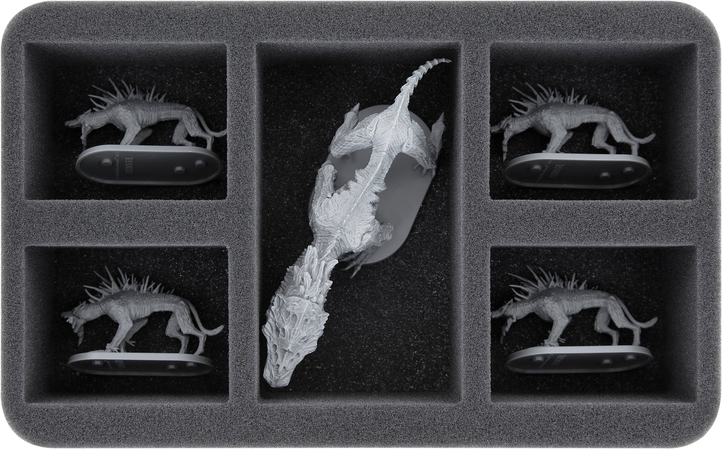 - 1 Half-Size foam tray for 5 larger miniatures (HSMEJK060BO)
