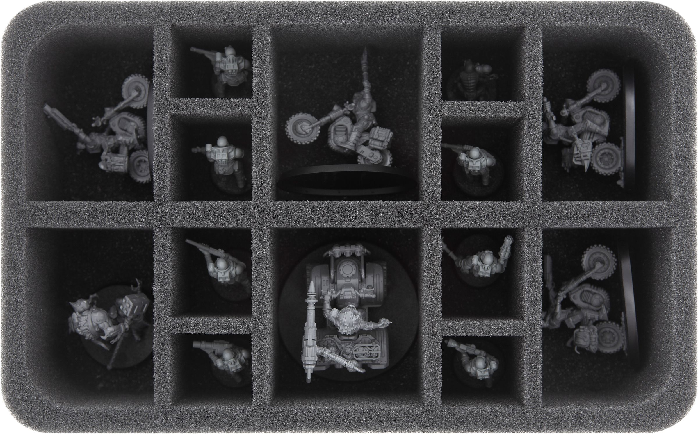 The 80 mm high Full-Size tray can hold up to four large models. The four compartments are ideal for vehicles such as Ridgerunner and Goliath Rockgrinder, or a Leman Russ.