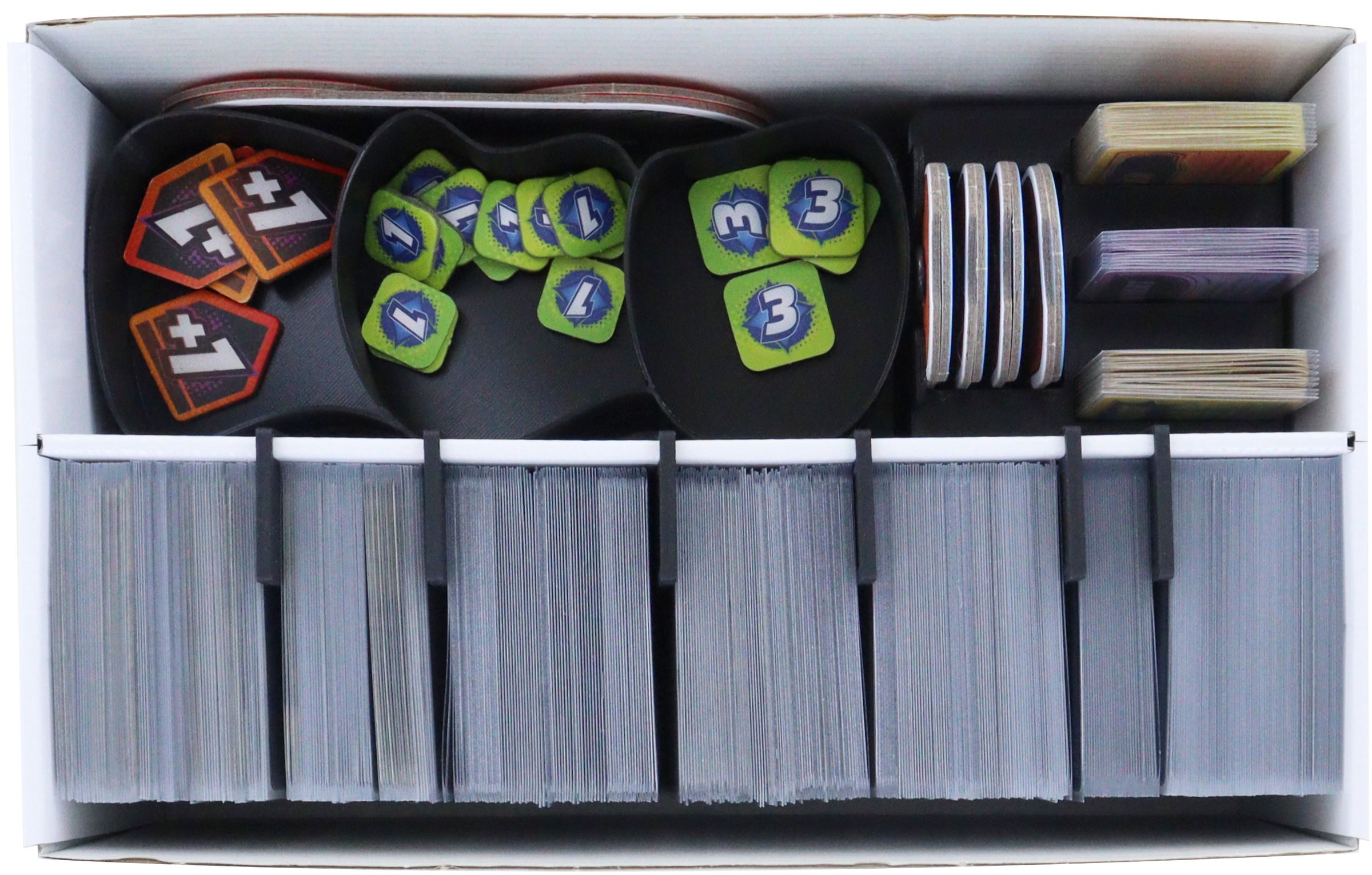 - The bundle provides ample space for a maximum of 1,200 cards with protective sleeves (2,400 without) and all the small-sized components from the core game.