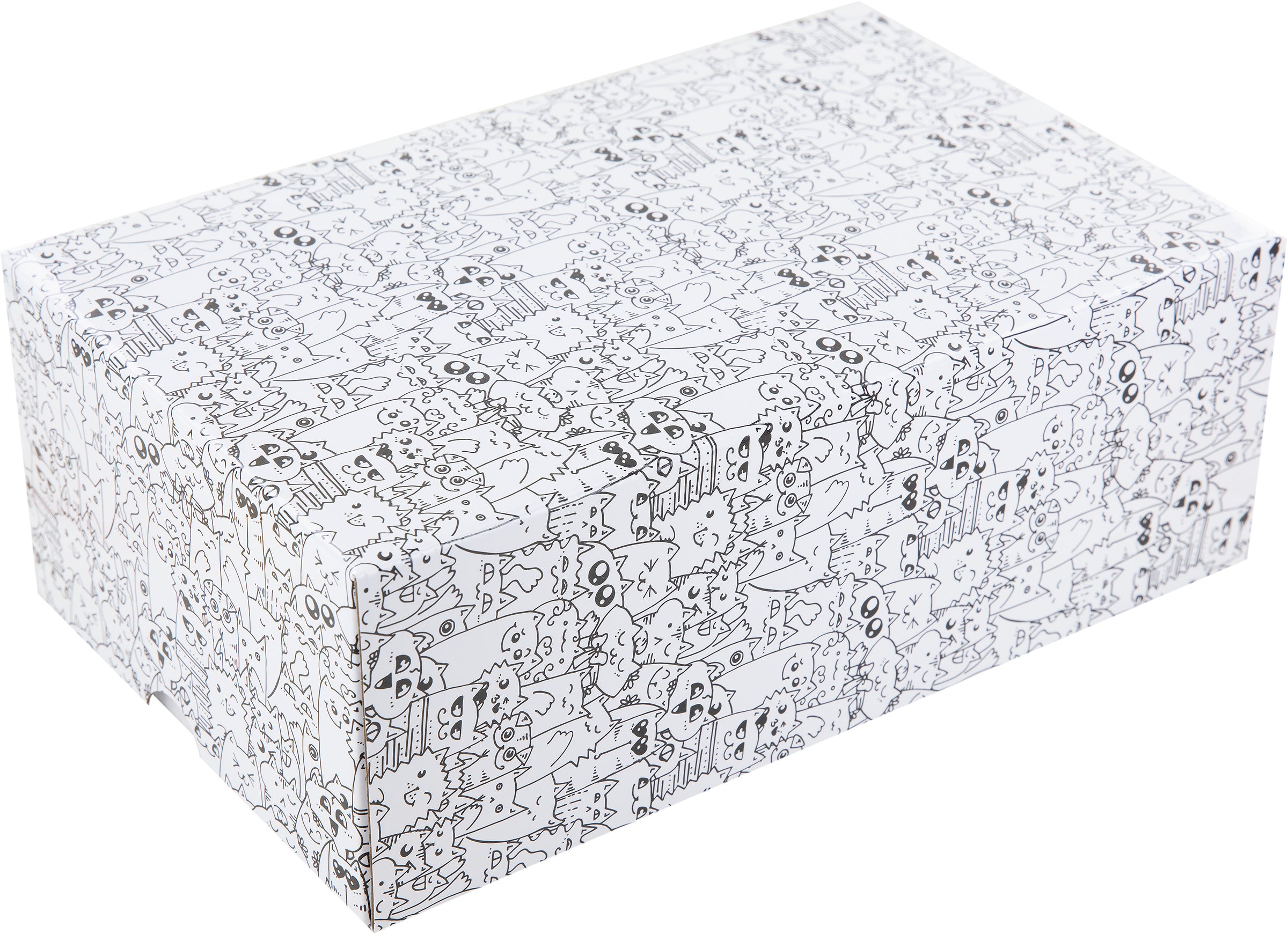 The bottom part is made of white-coated cardboard. A divider in the middle of the box divides it into two equal-sized compartments. This allows the cards to be lined up neatly without mixing during transport.
