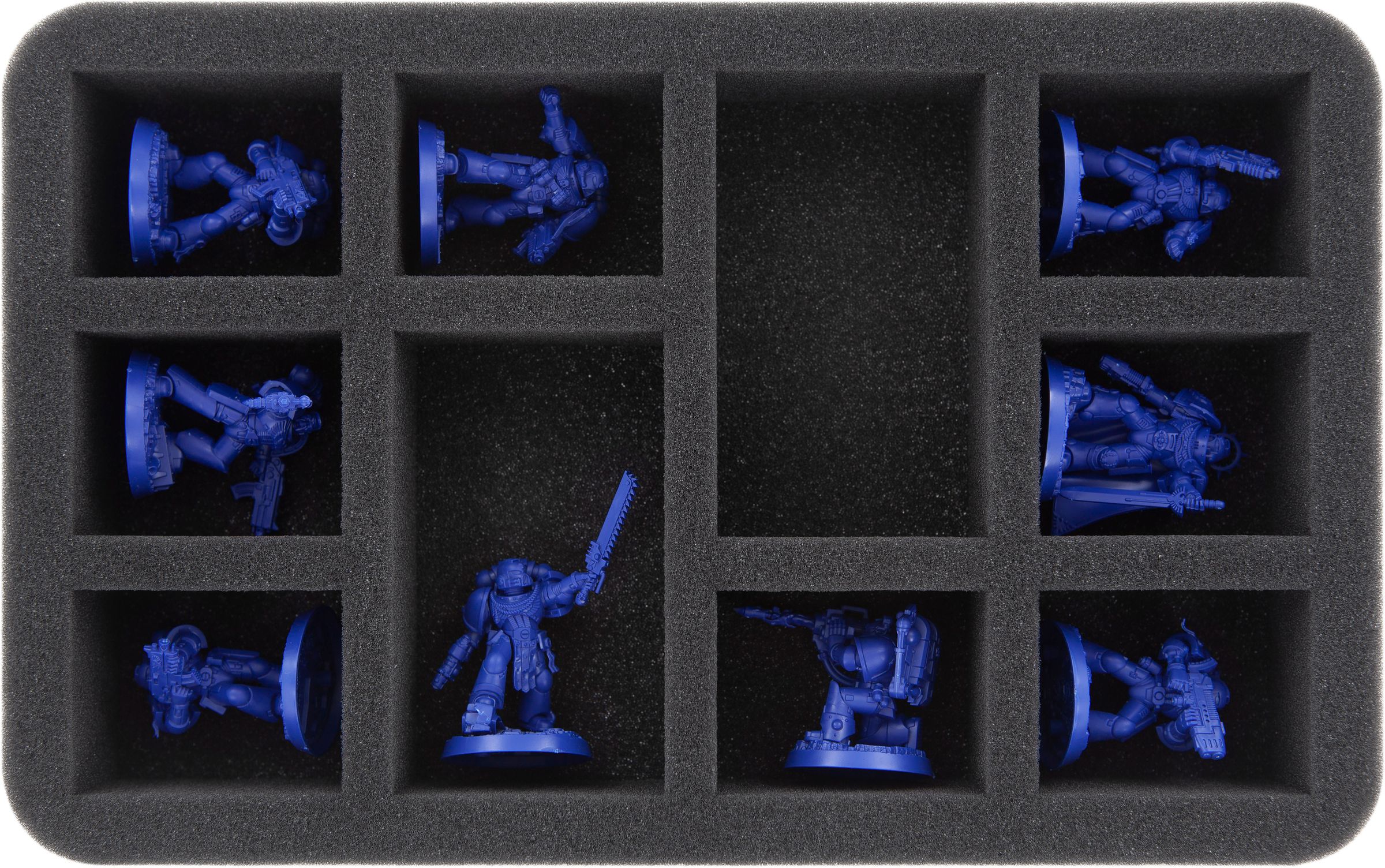 - 2 Half-Size foam trays with each 10 compartments for standard infantry miniatures like Primaris Reivers (HS045WH39)