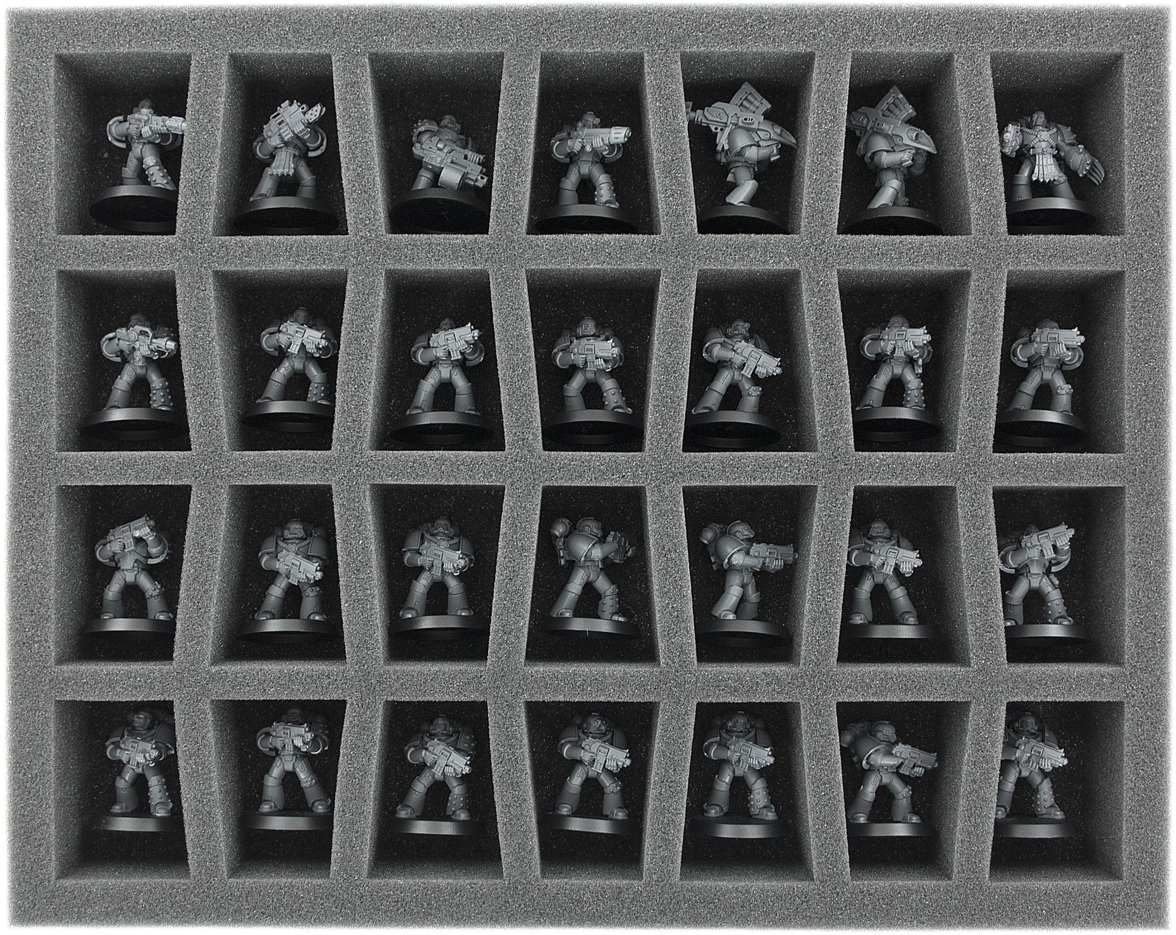 1 inch full-size foam tray with cut outs: Perfect for all standard miniatures, like Flames of War, Confrontation, GamesWorkshop and all others
