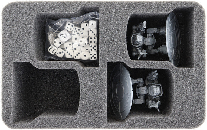 • 1 Half-Size foam tray with 4 miniature-precisely cut compartments for Warhound Titans (HSMEHK085BO)