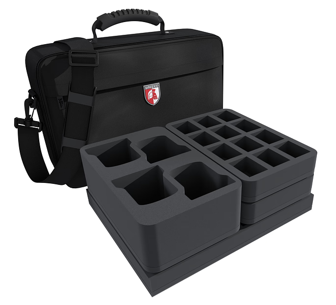 One Full-Size and three Half-Size foam trays ensure all miniatures are neatly and securely stored in the bag. Each figure has its own compartment, preventing them from slipping and colliding during transport. Sensitive details are optimally protected, and the soft foam preserves the colors of your painted models from abrasion and scratches.