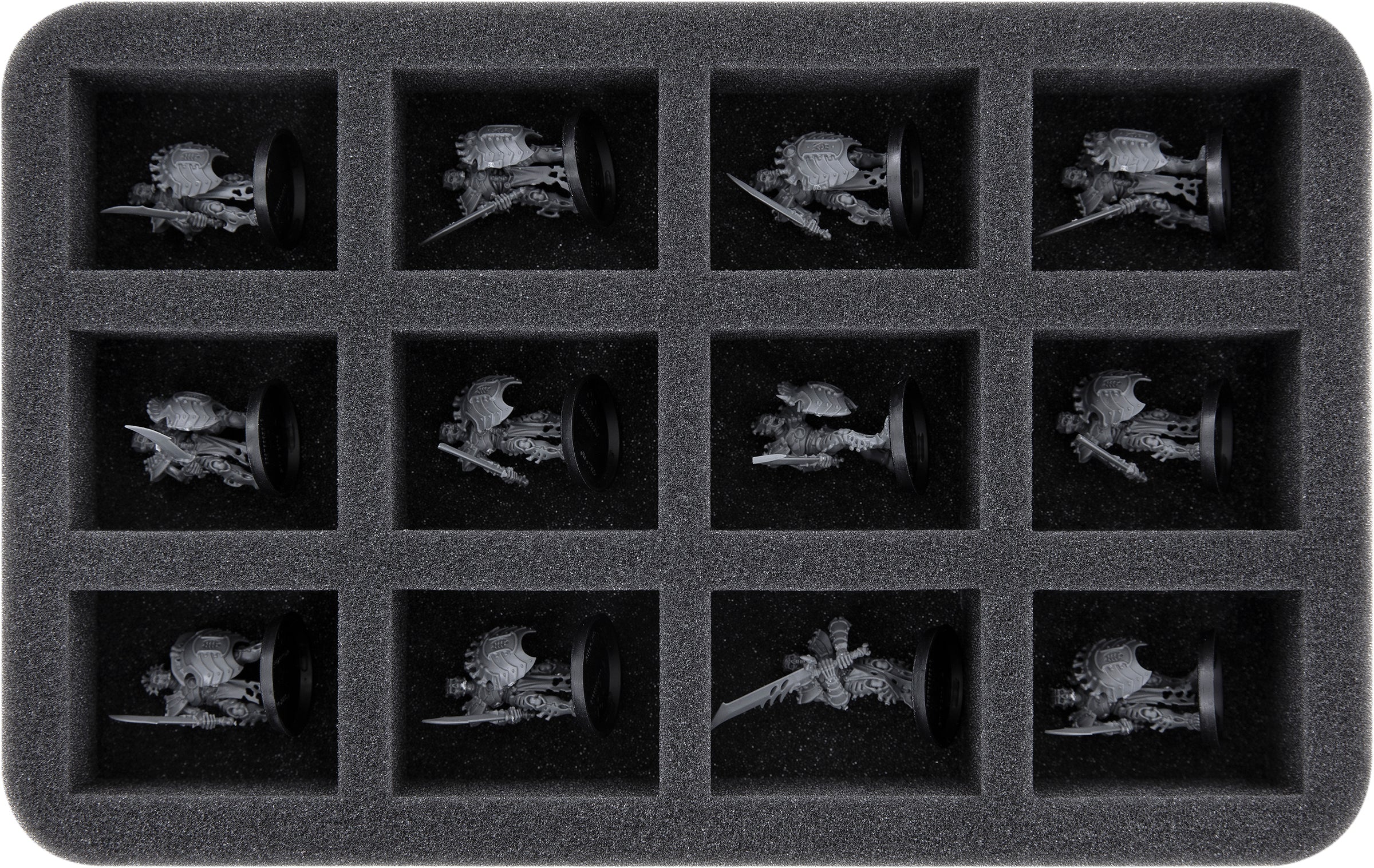 - 1 Half-Size foam tray with 12 compartments for miniatures (HS040I012BO)