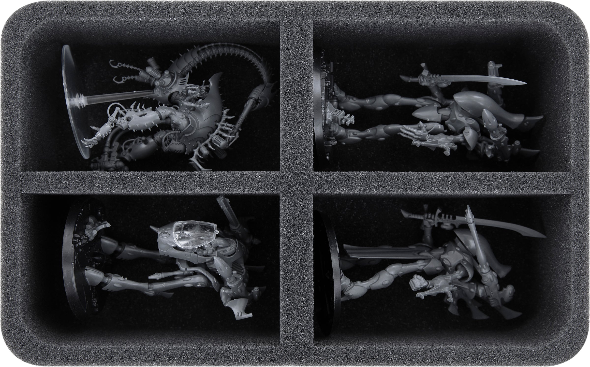 - 1 Half-Size foam tray with 4 compartments for large models such as Wraithlord, War Walker, Cronos and models with similar dimensions (HS080A014)