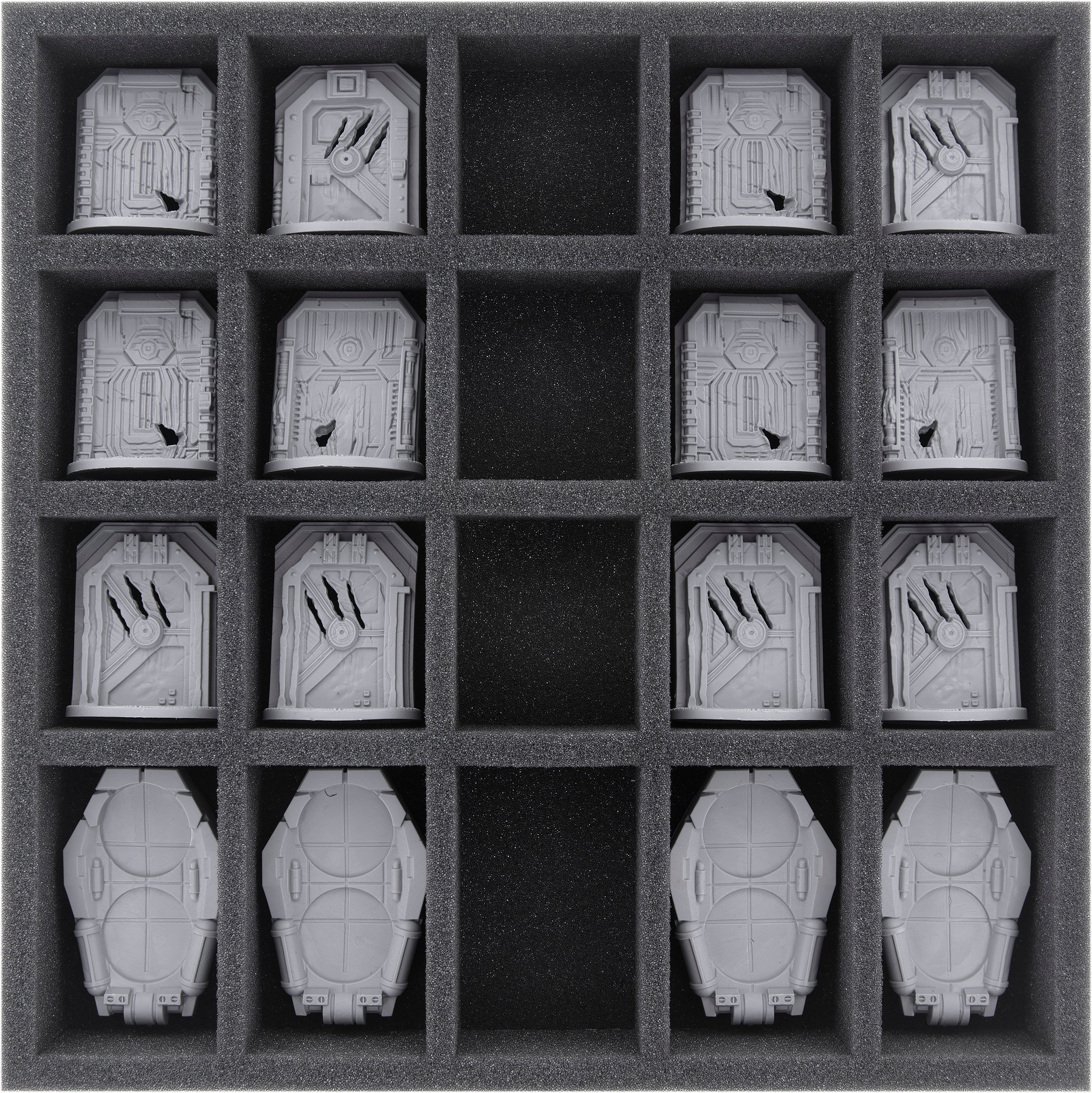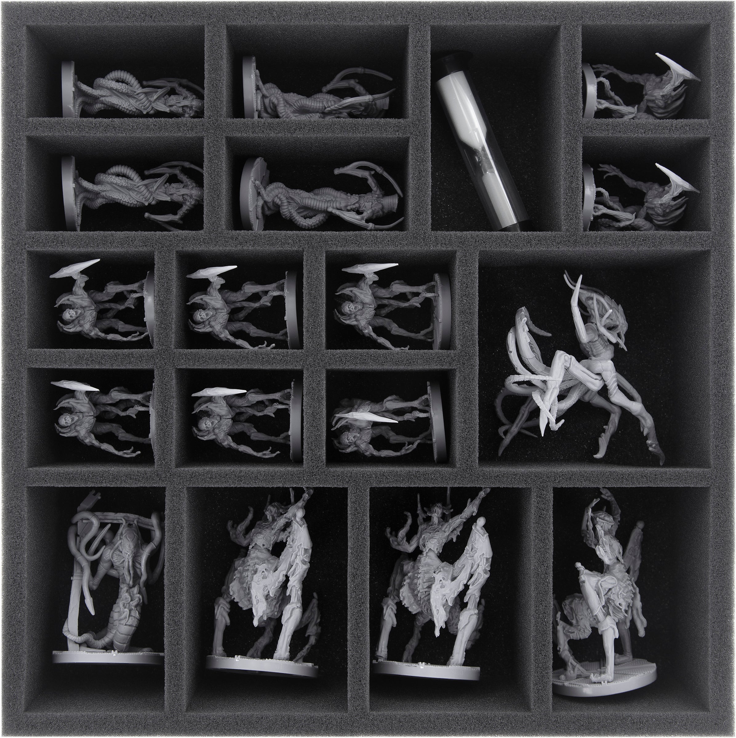 Three inserts are provided for the miniatures. From the Lairs to the Catonaut to the Despoiler, each figure gets assigned a suitable compartment. The fine detailed miniatures are completely surrounded by foam and, thanks to the precisely fitting cut, remain in place even when on the move. Thus even the most impassable transport cannot harm the sensitive parts. If you paint your miniatures, you can also make sure that the colors are not scratched or abraded.