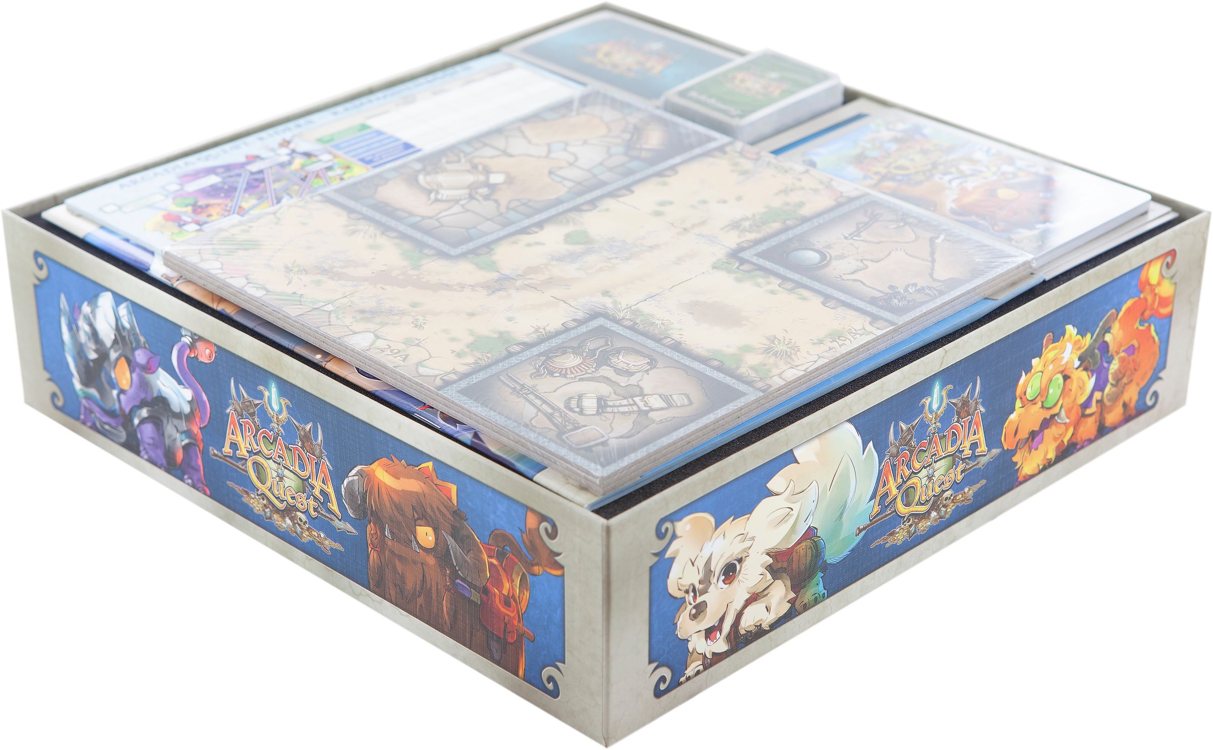 - The set fits exactly into the original board game box of the Arcadia Quest expansion "Riders".