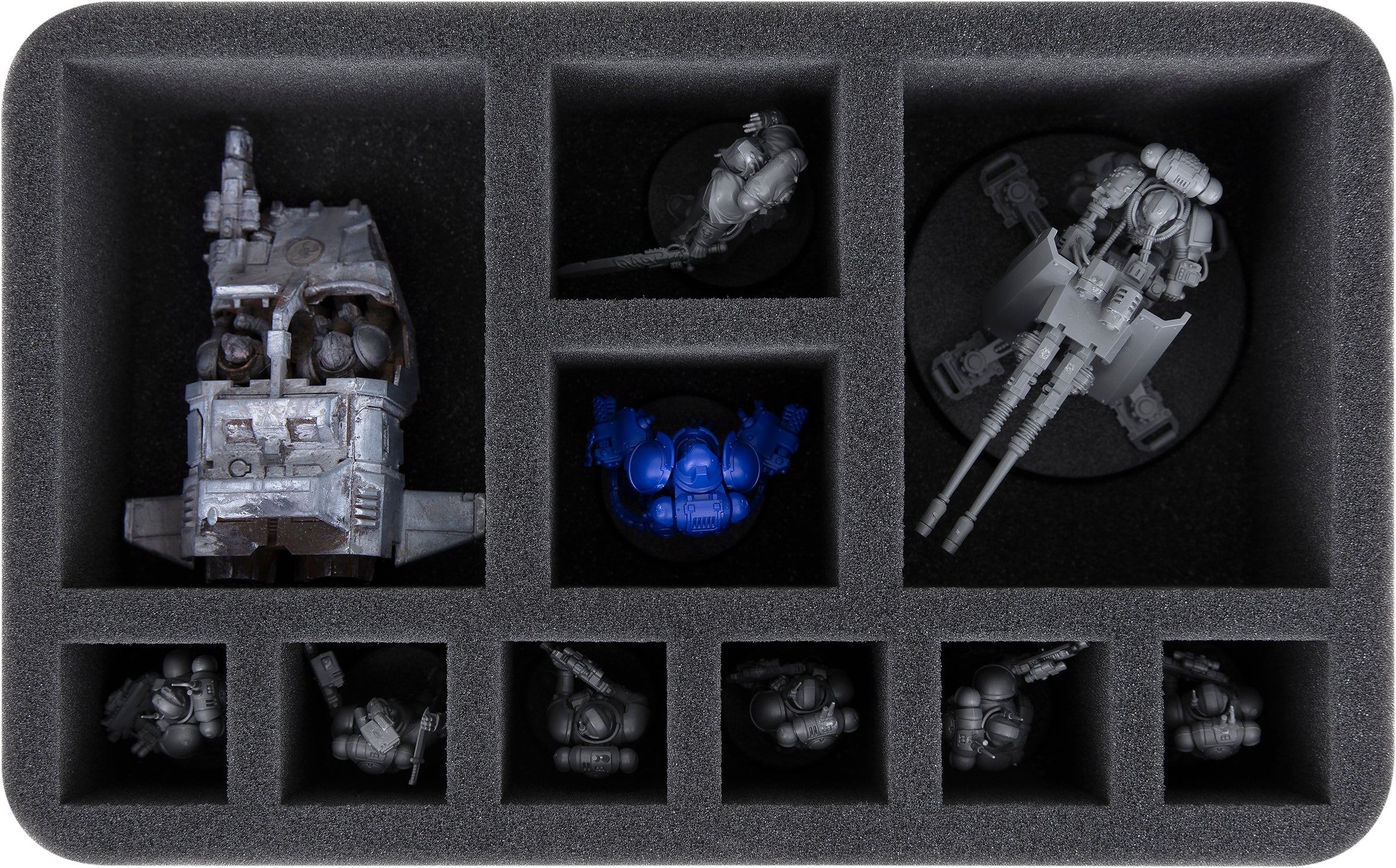 This Feldherr Half-Size foam tray offers space for up to 10 miniatures. Thanks to the high-quality foam, you can transport your figures carefree to the next event!