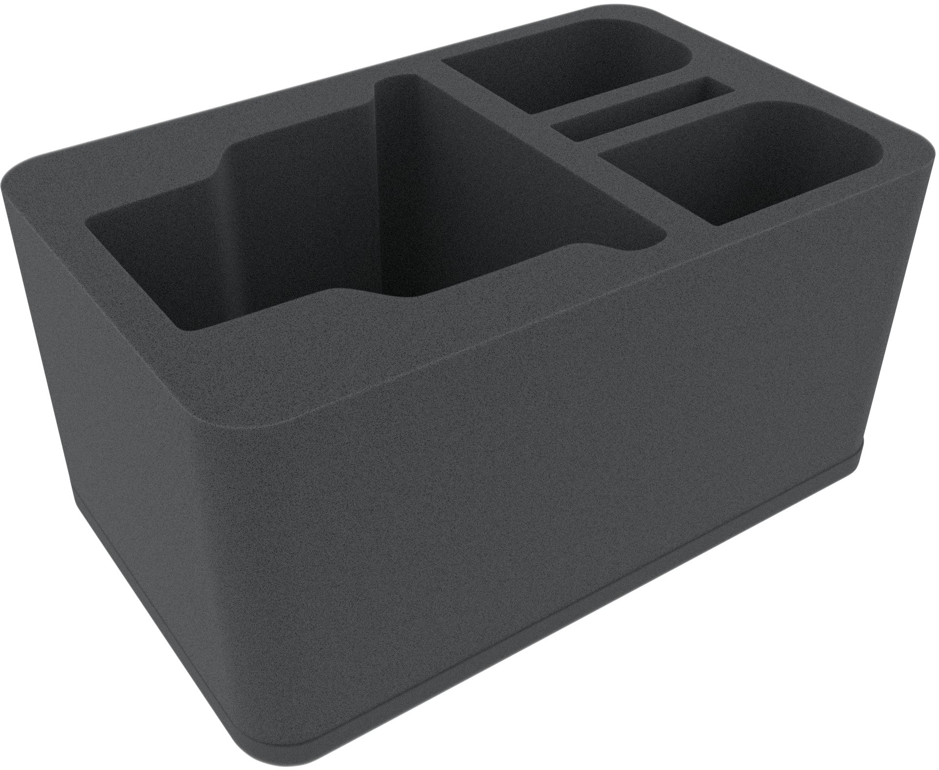 The foam mat is divided into 4 compartments. The large compartment was tailor-made for the Kickstarter exclusive miniature of The Iron Throne. It's safely wrapped in foam and won't slip around during transport. The jagged edges remain spiky and when the mighty throne has been painted, the colors are optimally protected against abrasion and chipping.