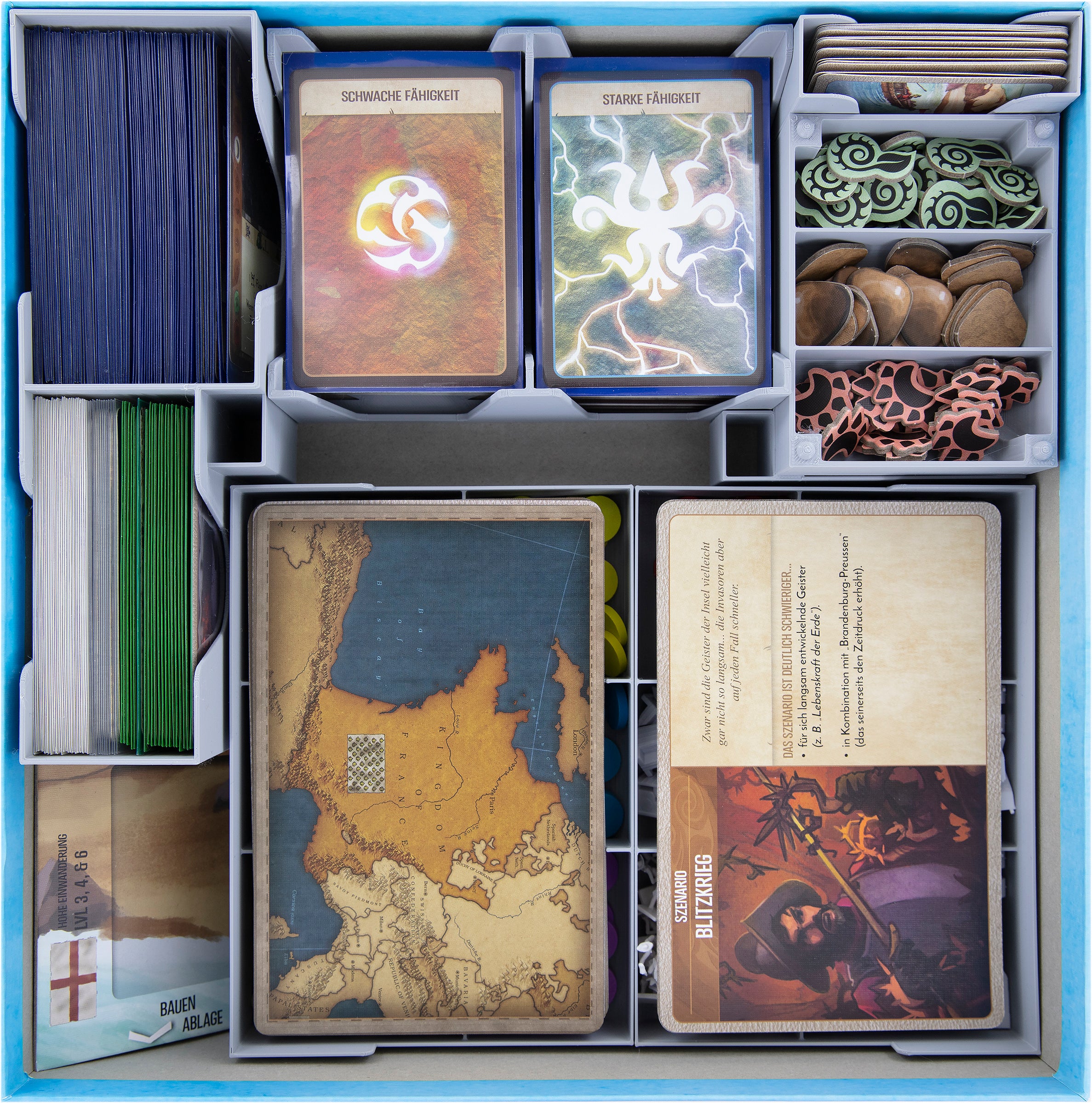 We created this Feldherr Organizer for you to keep your game material neatly organized. As we take care of the organization in the box and on the game table, you can drive the invaders from your island.