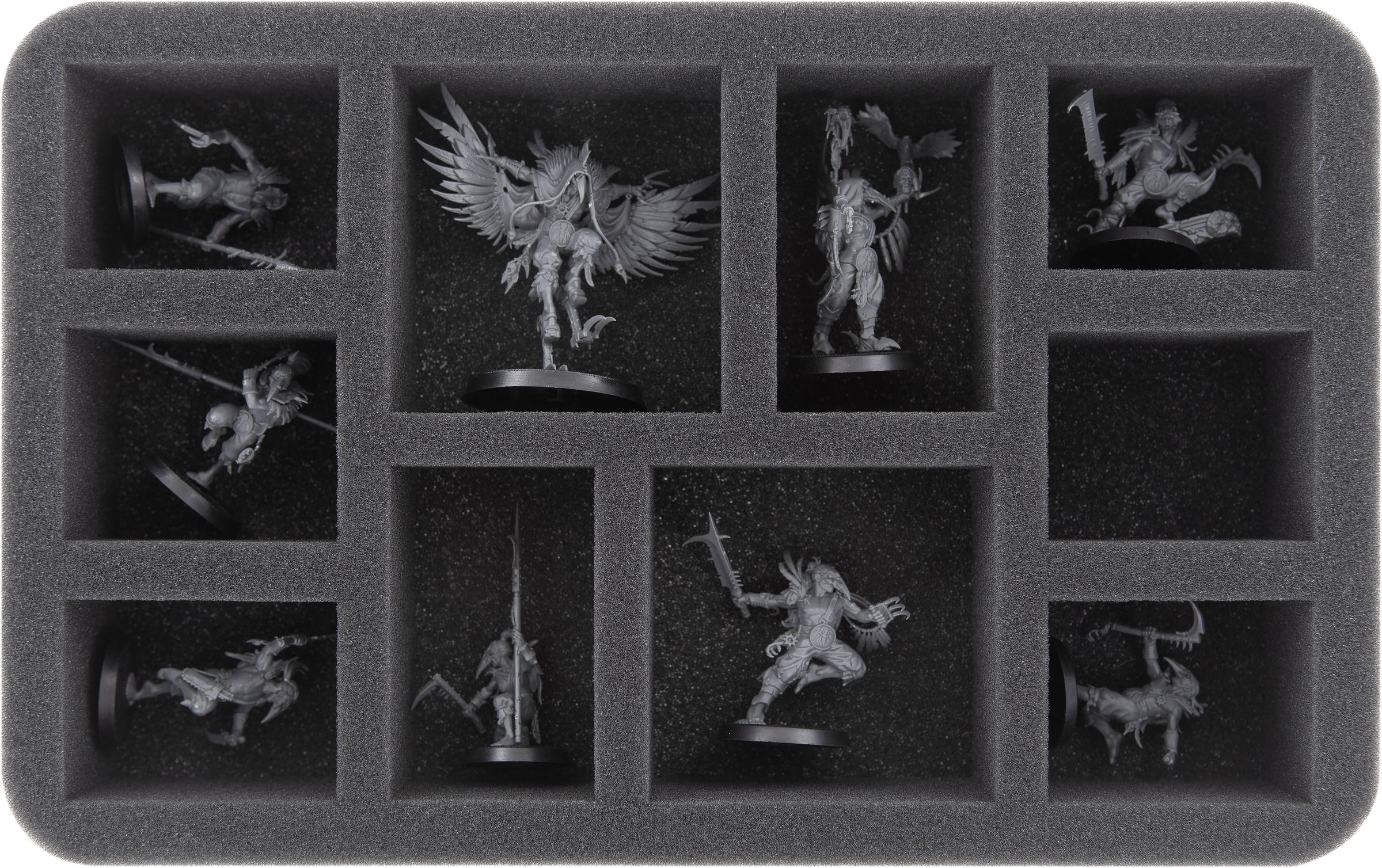 The insert offers you 10 compartments for each model of your warband, one custom-fit compartment for each miniature. Another compartment remains at your disposal.