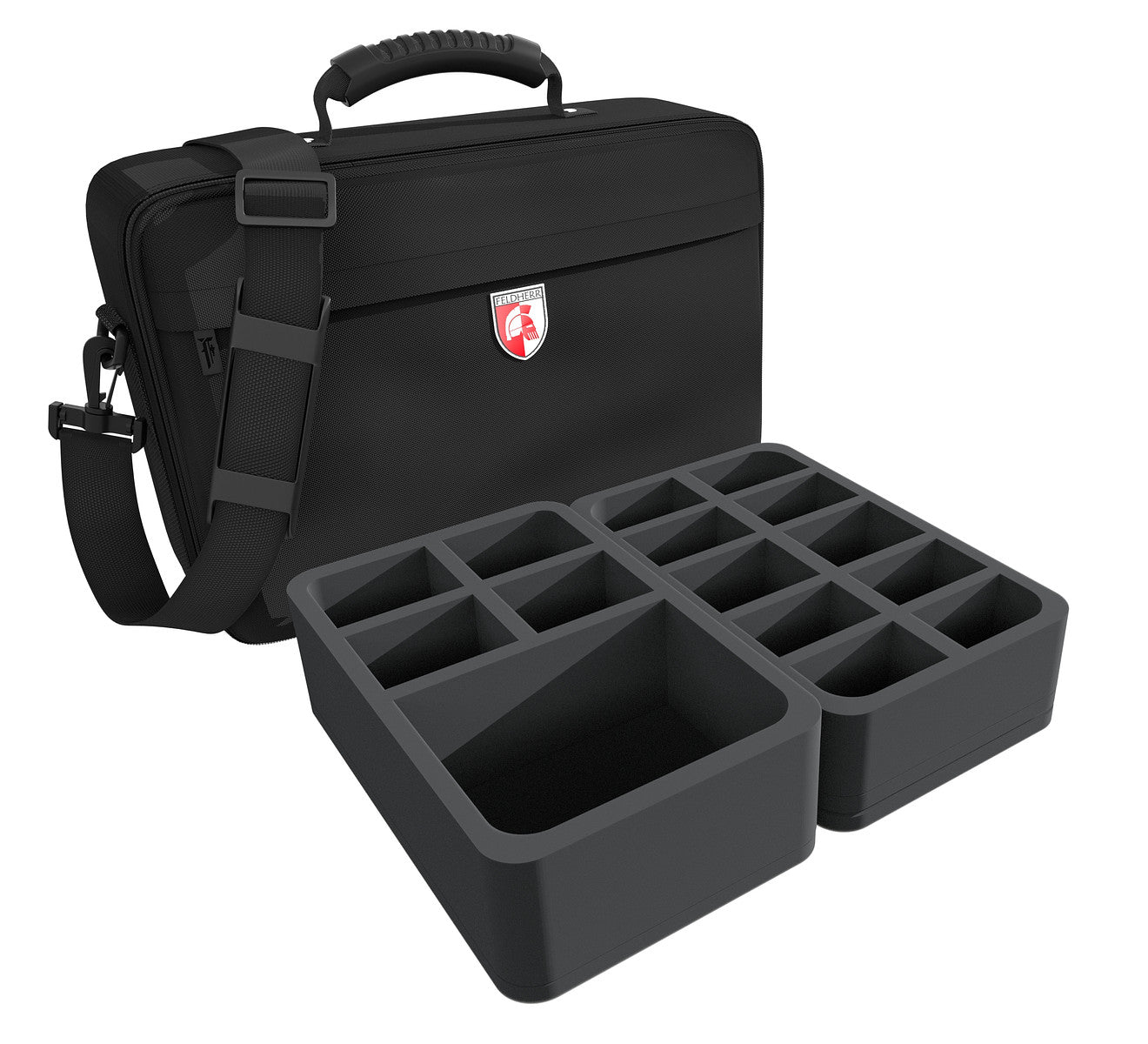 The Feldherr MEDIUM bag is made of particularly hard-wearing material. Padded side panels and a reinforced base ensure the miniatures are well-protected even when transported by car or train.