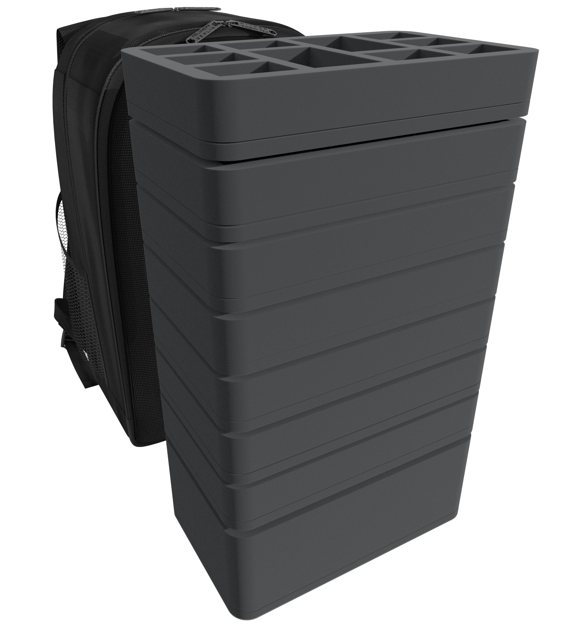 Once you have packed the insert with the figures in the Backpack, place the supplied foam topper on the top insert before closing the Backpack. This ensures nothing can fall out of the insert, even if the bus driver has had a bad day.