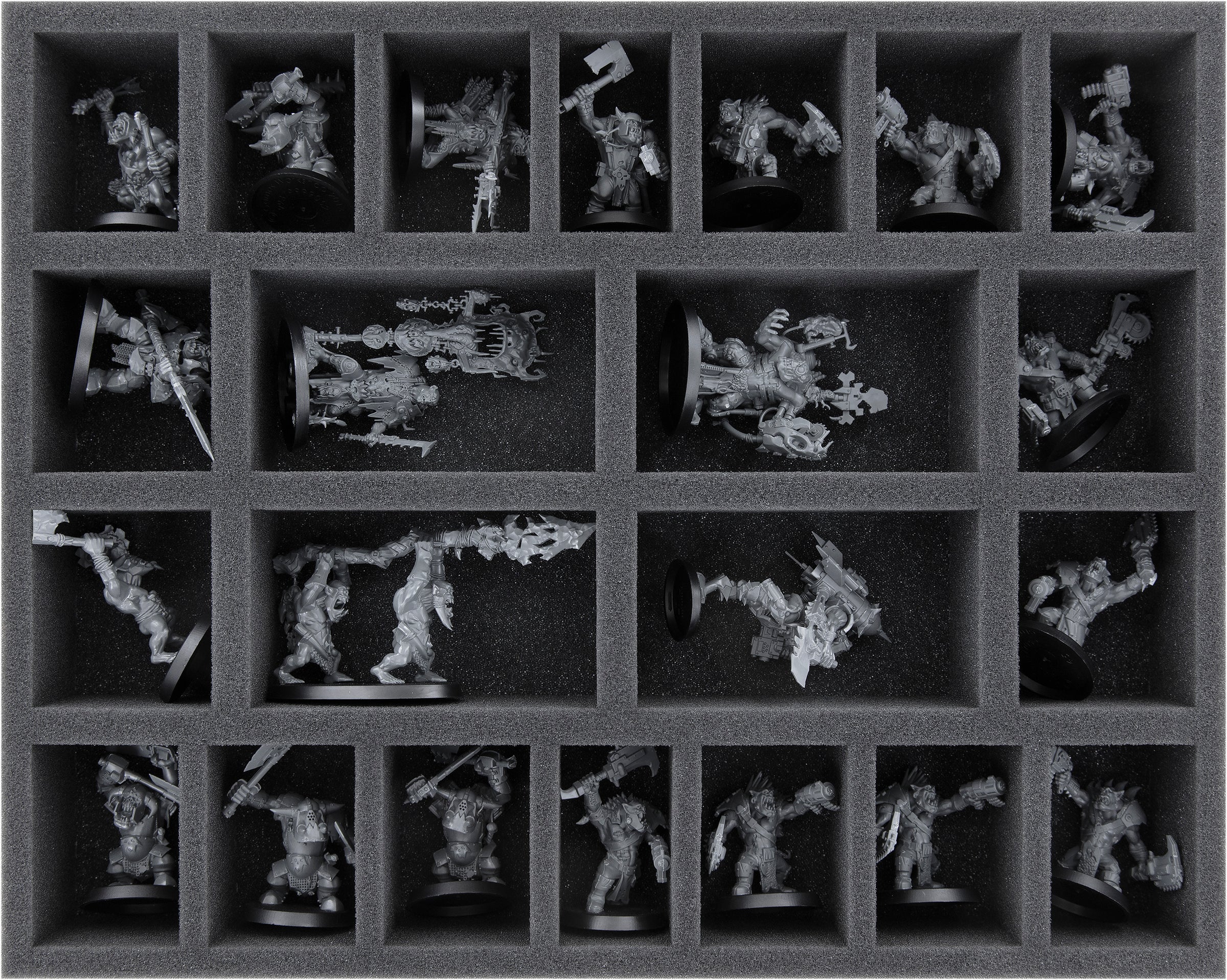 On this Feldherr foam tray you have space for up to 22 miniatures of your army. The insert is especially suitable for storing Ork Boys and similar sized models.