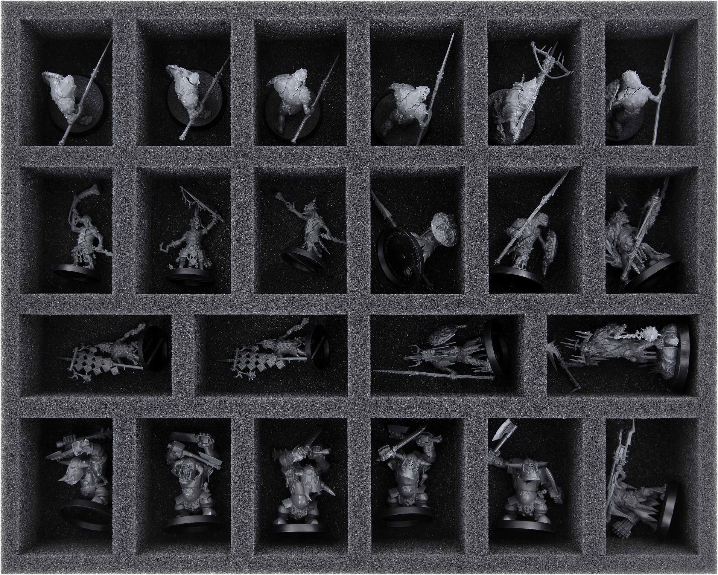 - 1 Full-Size foam tray with 22 compartments for e.g. Gutrippaz, Man-skewer Boltboyz, Hobgrot Slittaz (FSMEZZ050BO)