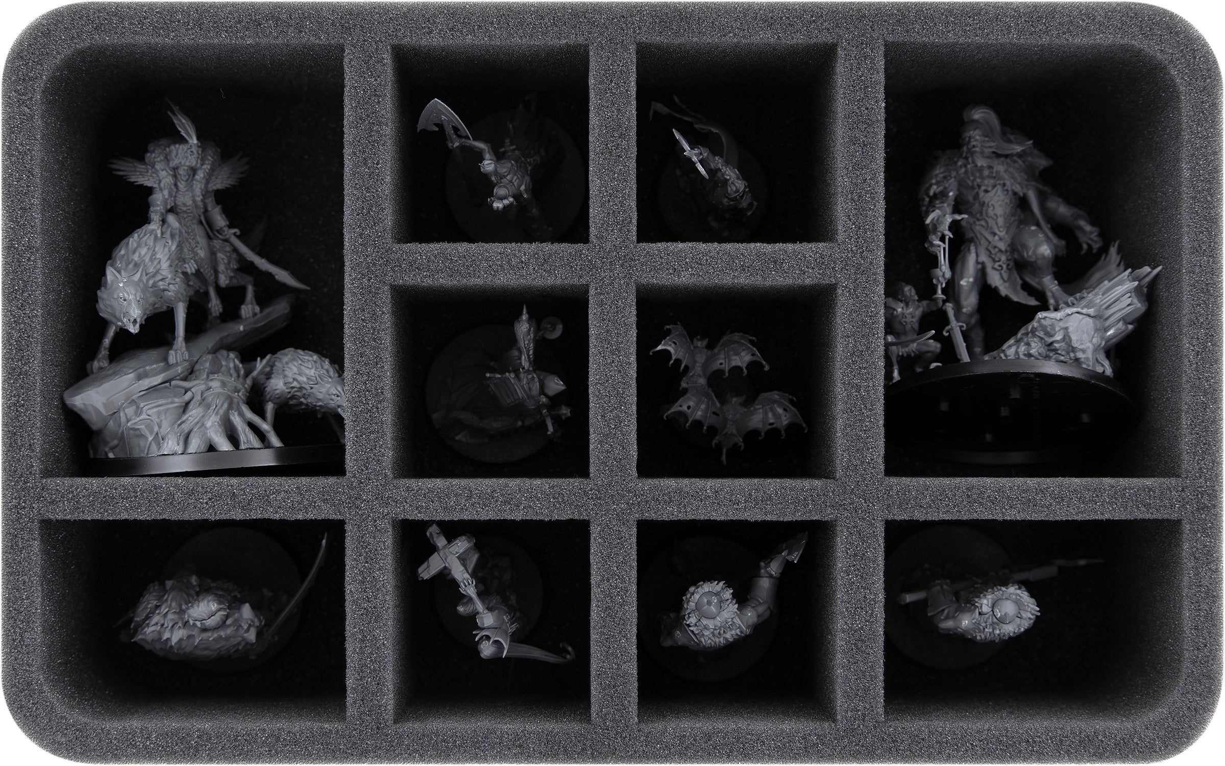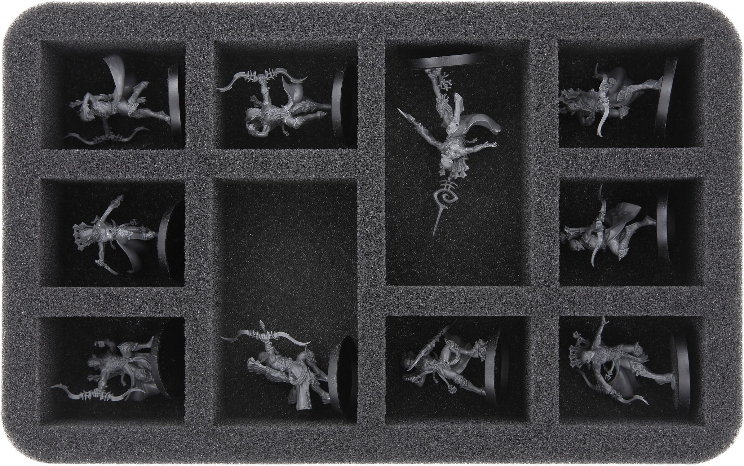 - 1 Half-Size foam tray with 10 compartments for e.g. Deathrattle Skeletons, Deathrattle Sepulchral Guard, Cairn Wraith, Necromancer (HS045A017)