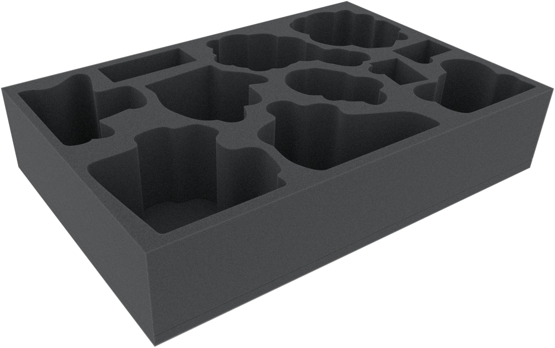 A 85 mm high tray has 9 compartments that are individually tailored to the miniatures.