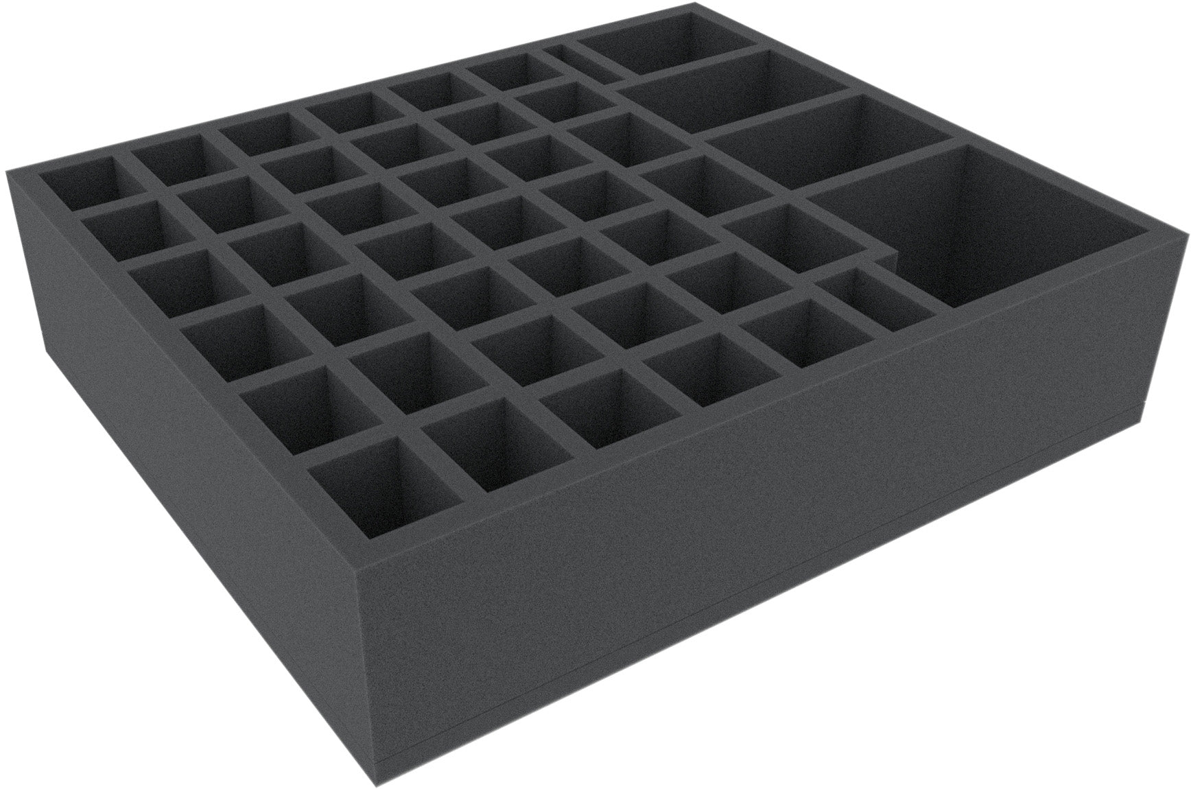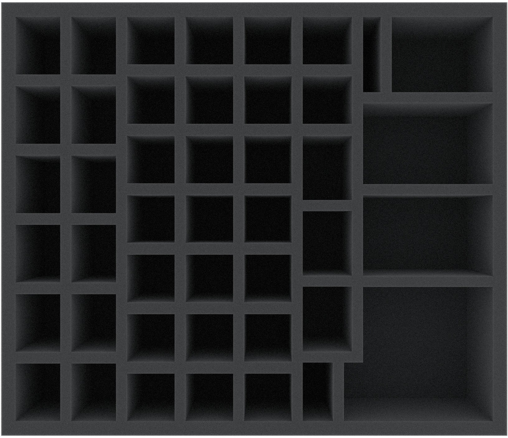 This foam tray has 44 compartments for the safe and orderly storage of miniatures, tokens, markers and/or dice. It fits many original game boxes.
