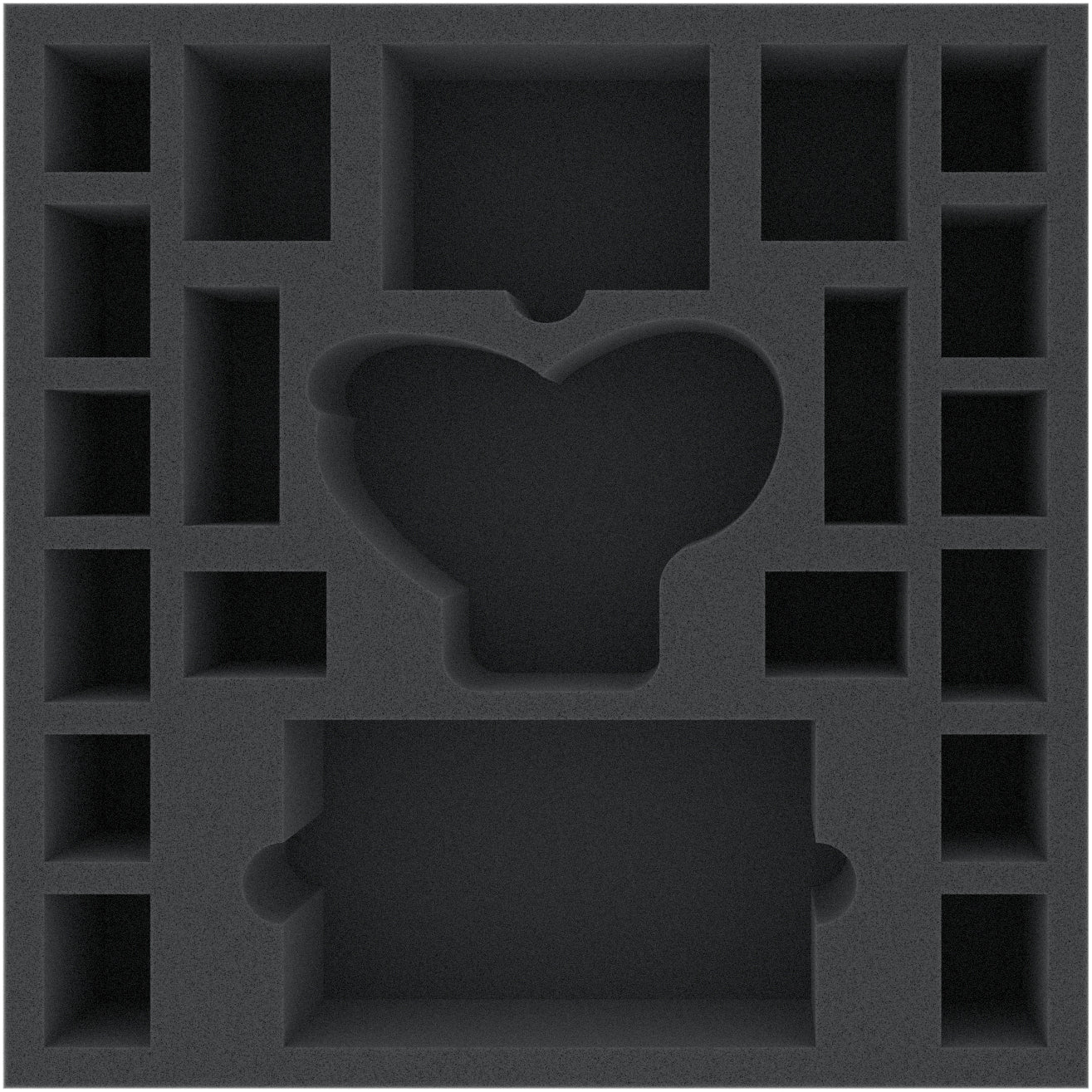 This foam tray has 21 compartments for the safe and orderly storage of miniatures, cards and tokens of the "Sword and Sorcery" expansion "Arcane Portal". The foam tray fits exactly into the original game box.