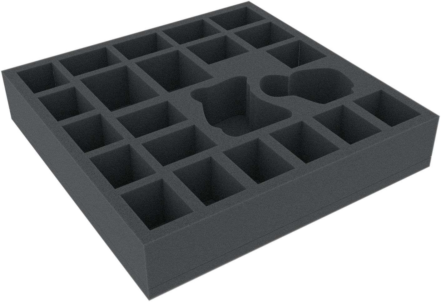 Your new miniatures – 20 enemies, 2 master enemies, 1 wolf form figure – each get a separate compartment in this foam tray. Your models are thus safe from incurring damage – delicate parts like scythyes and swords stay intact, color remains unharmed.