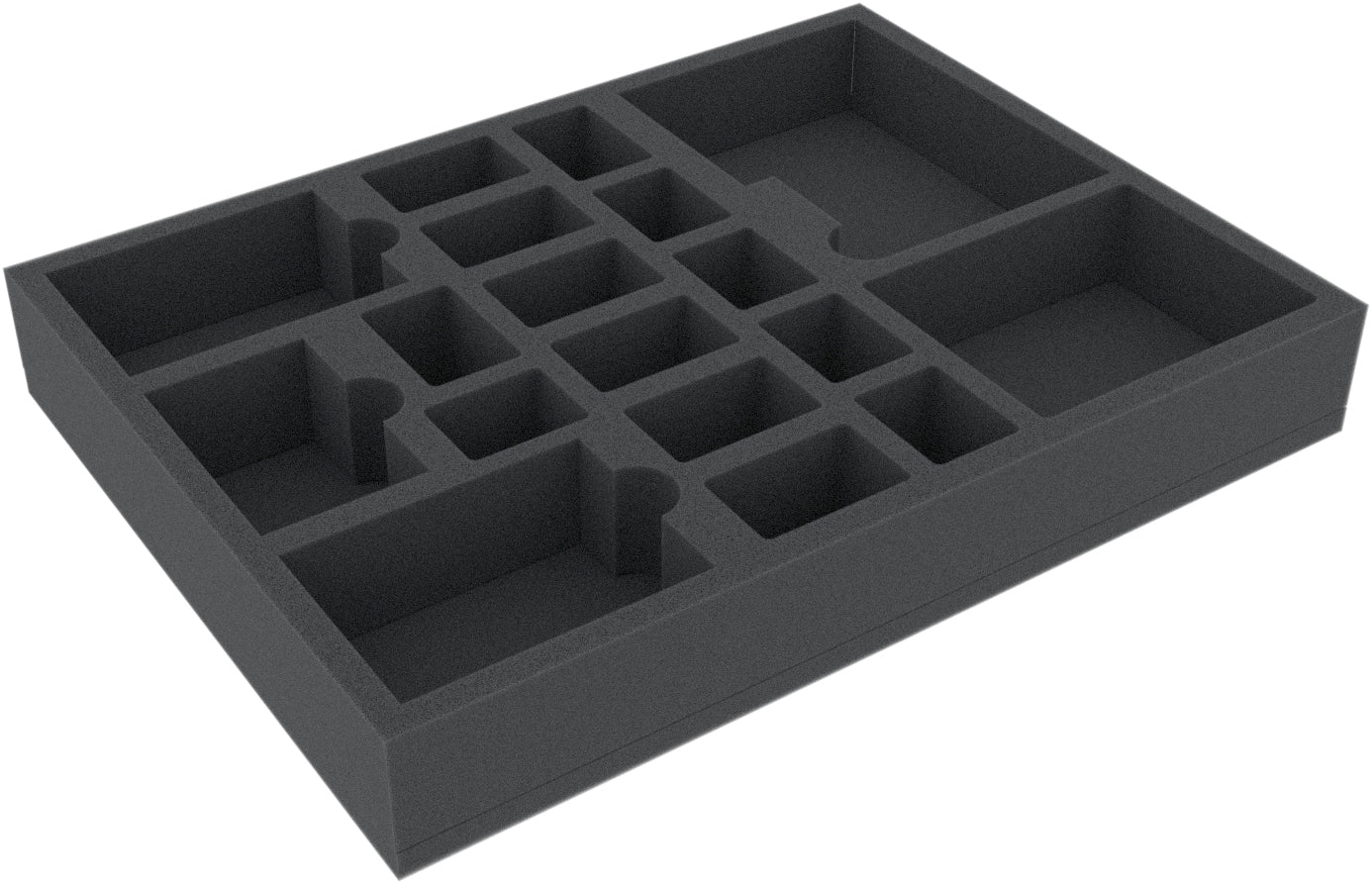 Divided into 18 compartments, the foam insert provides order, protection and overview in your game box.