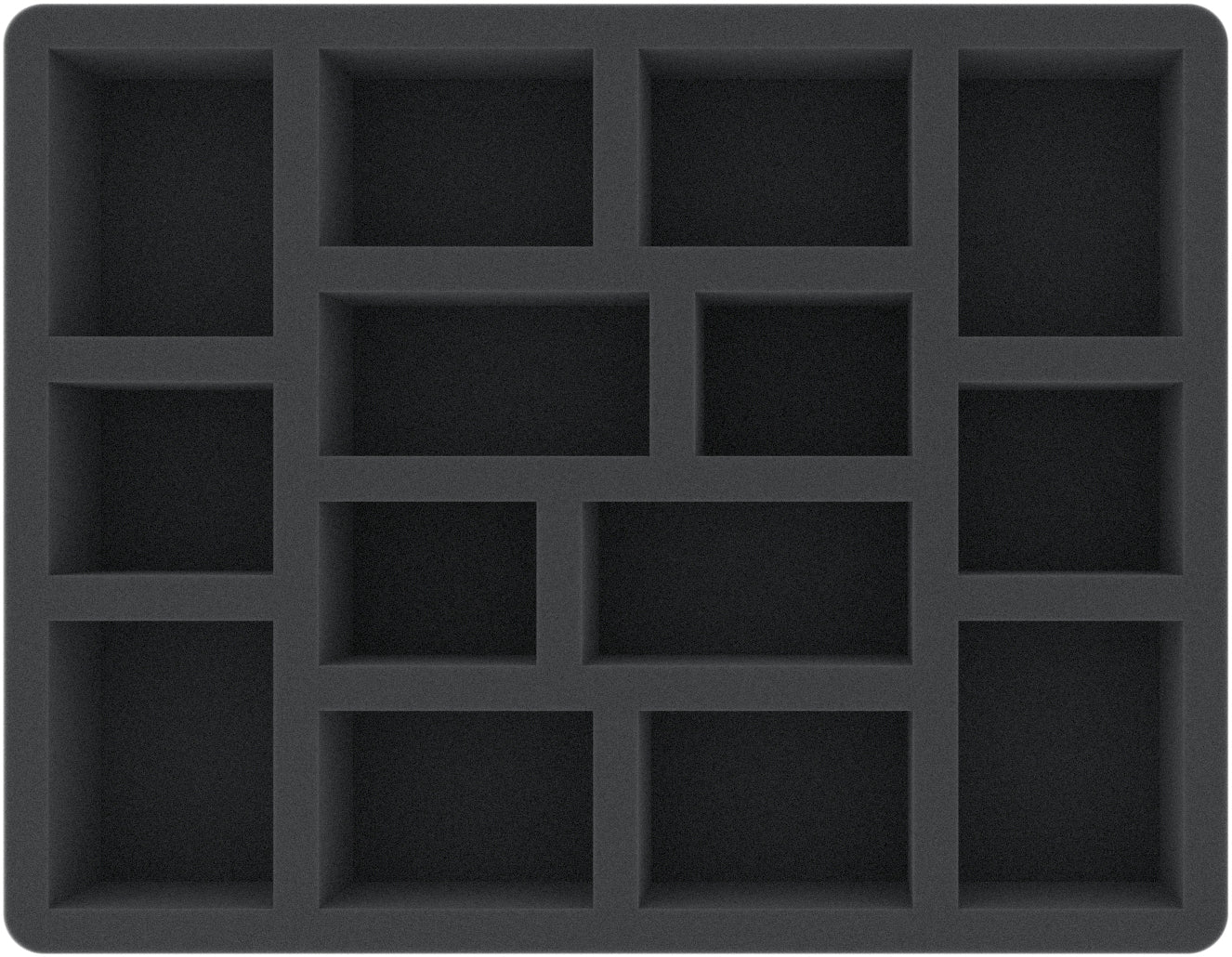 This foam tray has 14 compartments for the safe and orderly storage of tabletop- and board game miniatures. It is also well-suited to clearly sort board game material like e. g. dice and tokens. The high-quality foam provides reliable protection against damage – fragile parts stay intact, surfaces remain unharmed.