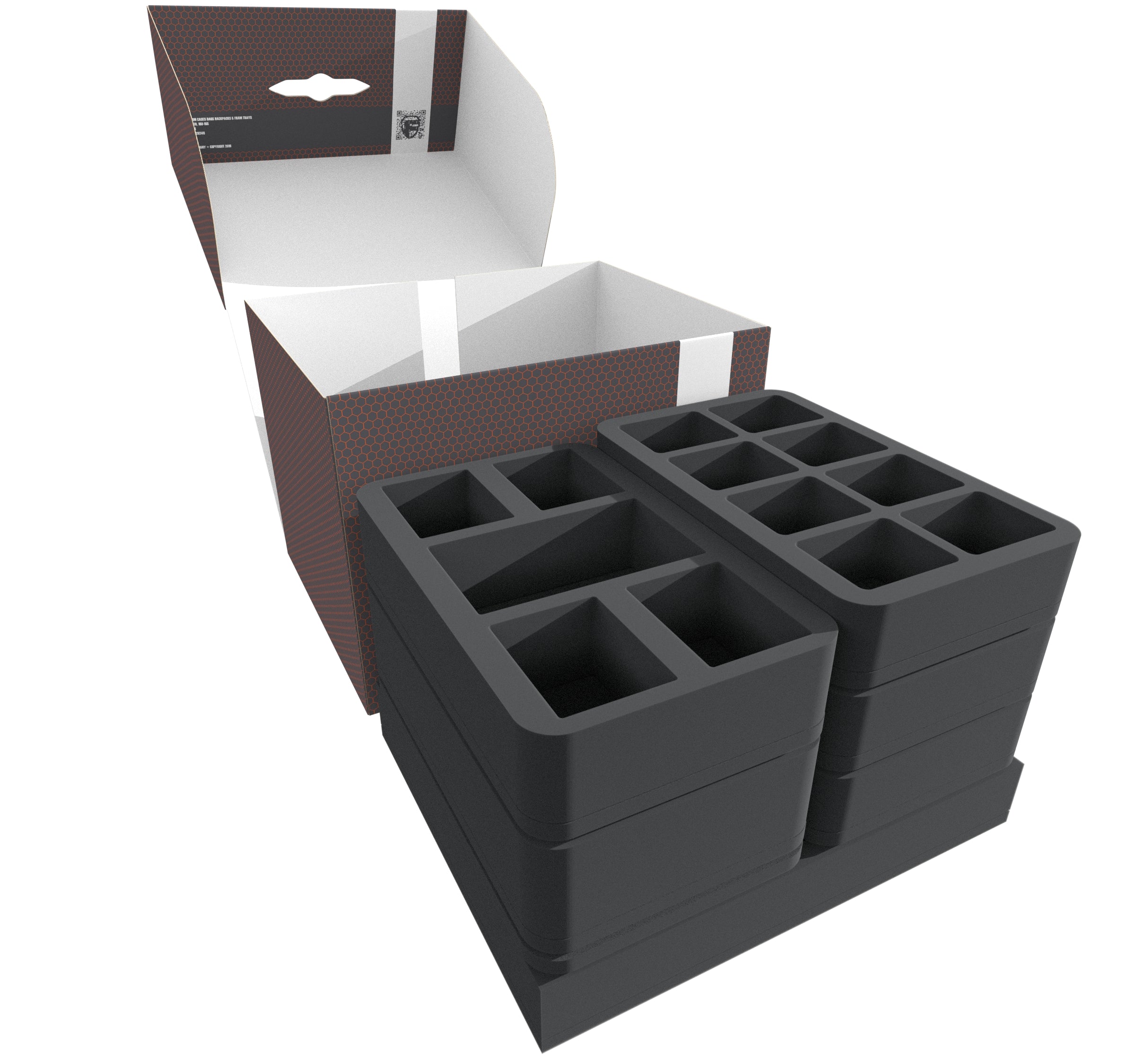 - 1 Half-Size foam tray for 8 medium-sized miniatures (HS050BF02BO)