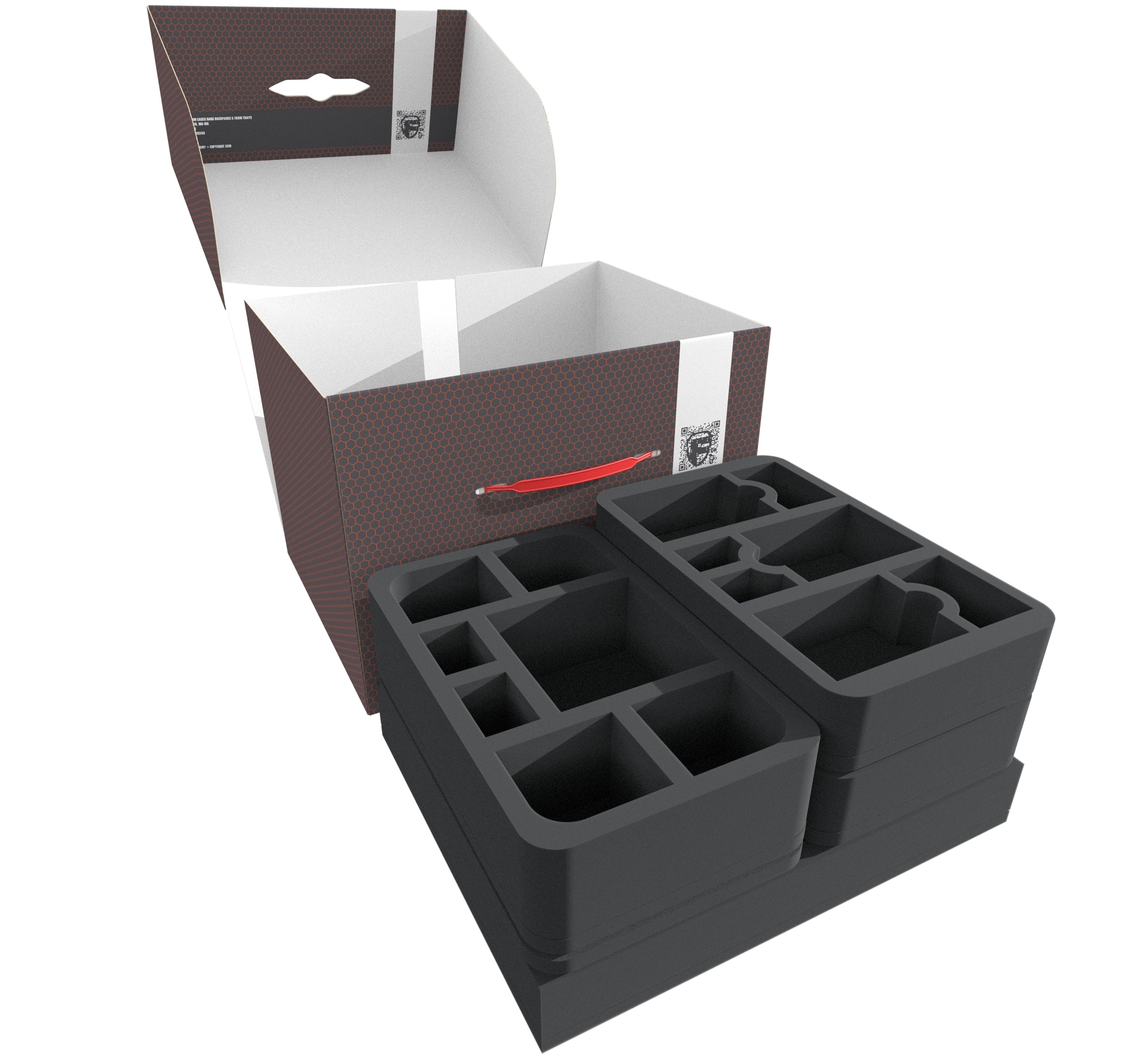 - 3 Half-Size foam trays with 7 compartments each for miniatures, cards, and game material (HSMEQO050BO)