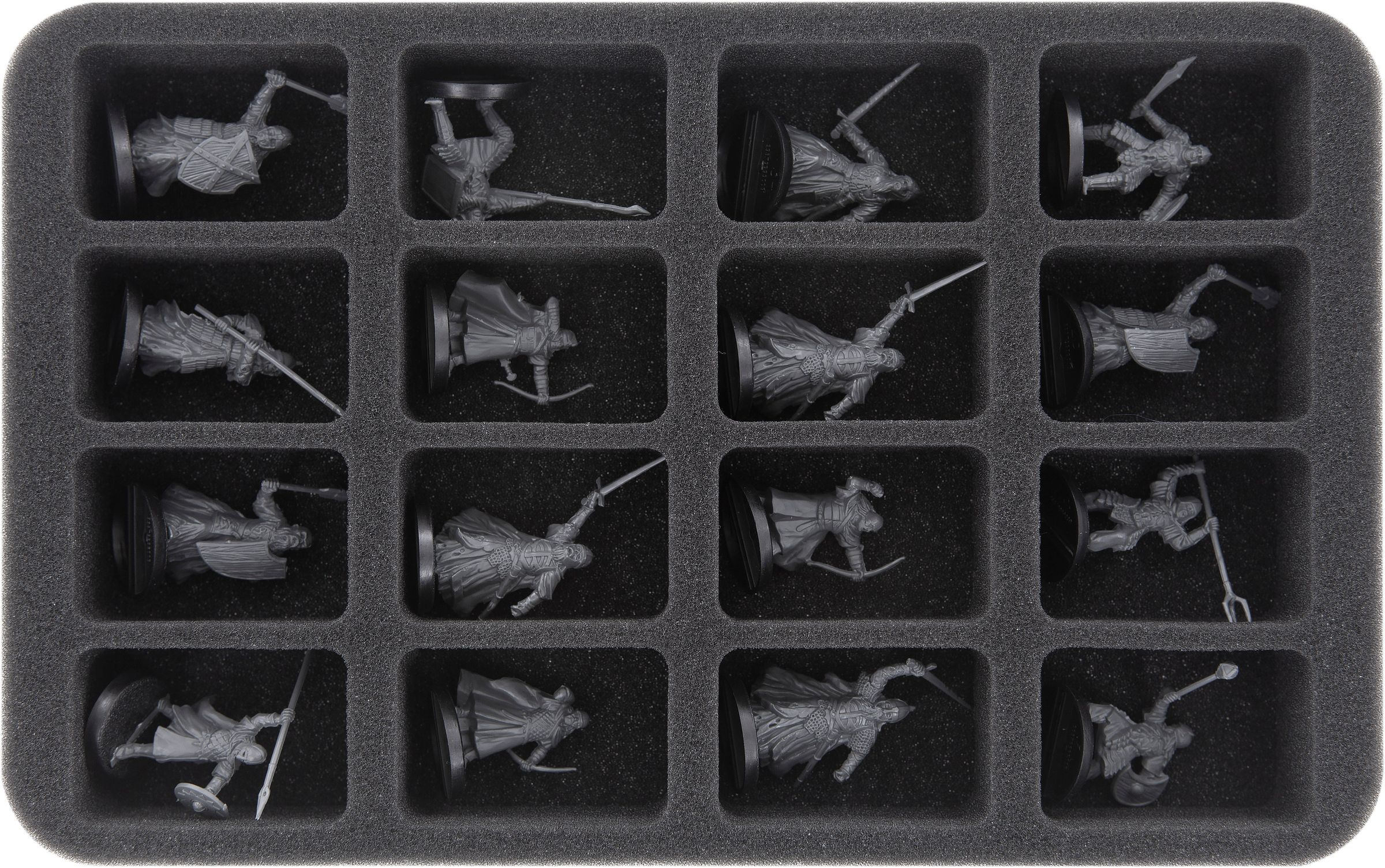 - 2 Half-Size foam trays each with 16 compartments for miniatures (HS040BF05BO)