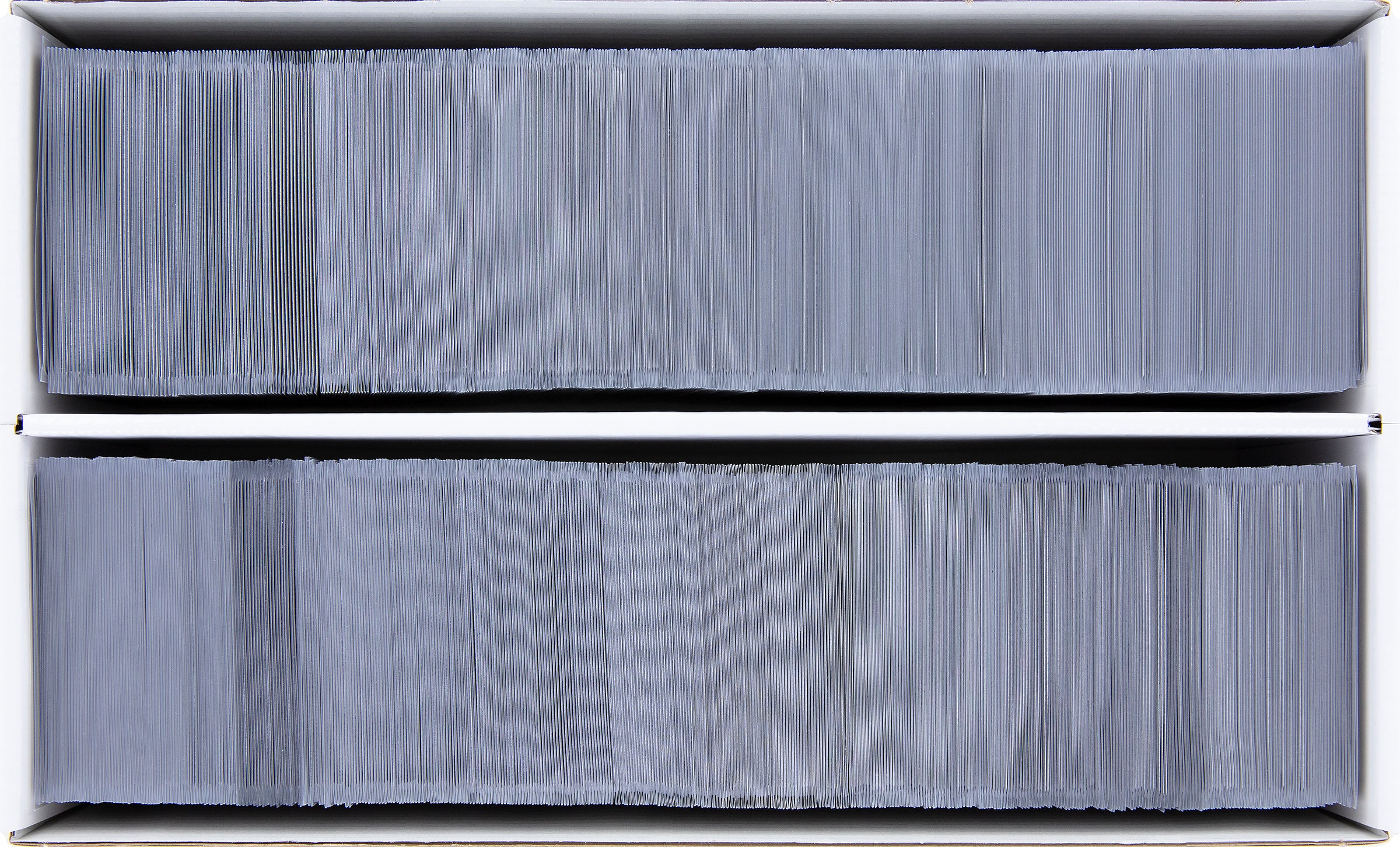 The Storage Box comprises two parts, box and lid. Both parts are made of coated cardboard. A partition in the middle of the box divides it into two equally sized compartments. The slip-on lid protects the cards from dust and other external influences.