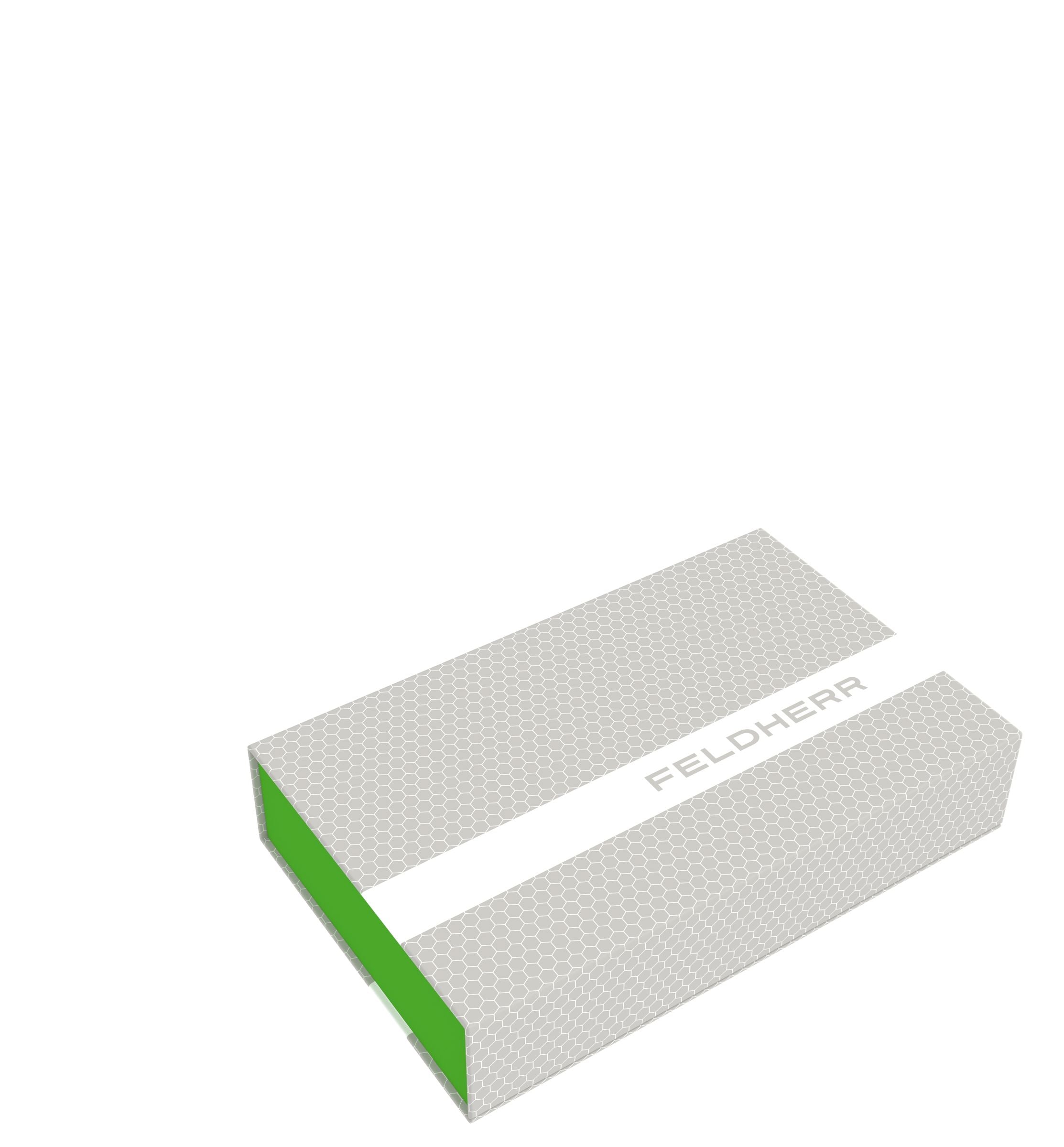 The Magnetic Box is the ideal solution for storage and transport due to its low weight and flat, rectangular shape. It consists of coated solid cardboard in modern Feldherr design. The green box, in which the foam mats are placed, is firmly glued to the casing. This also serves as a lid. Two integrated magnets on the flap and front allow a seamless and easy closing so that nothing gets lost during transport.