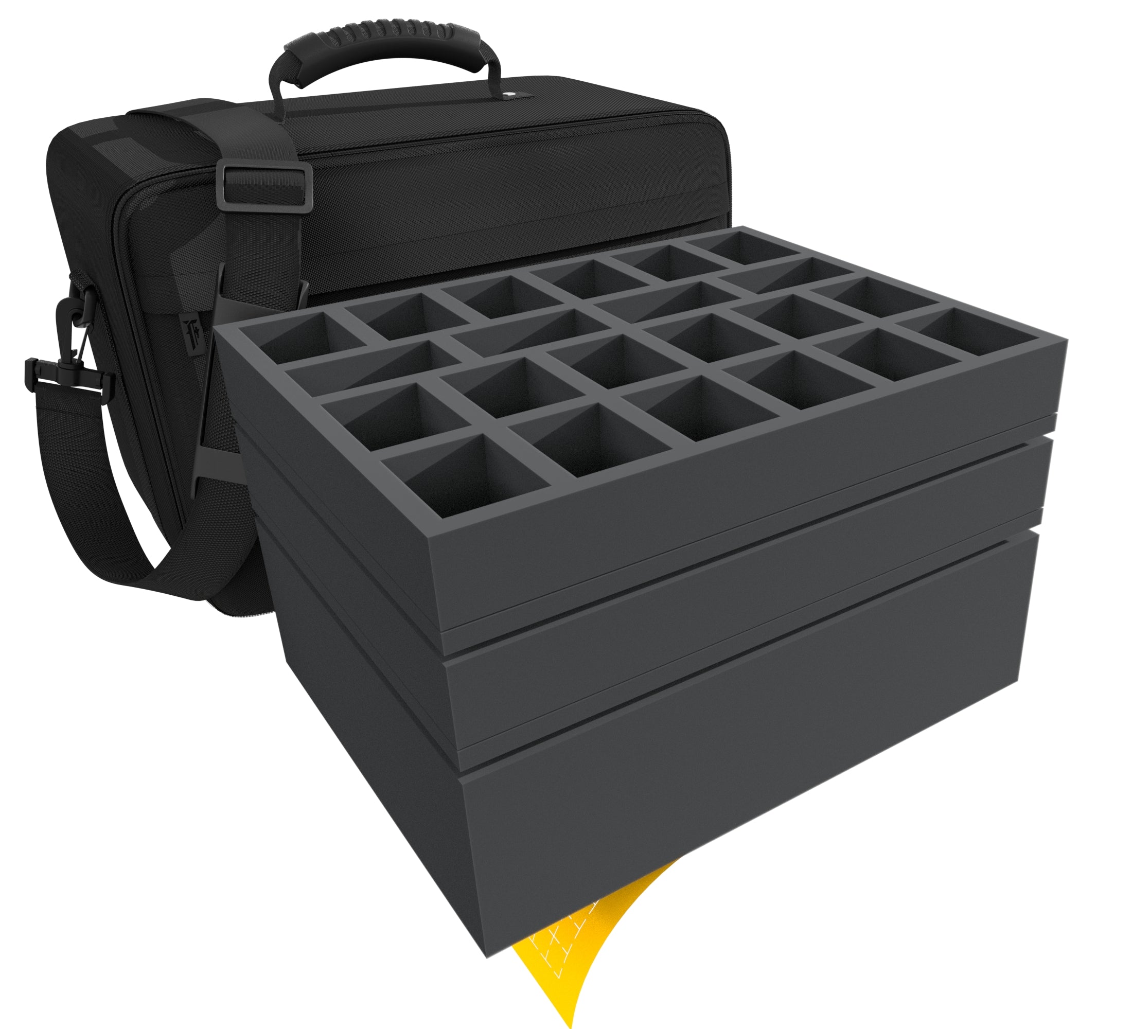 - 2 Full-Size foam trays with 22 compartments each for miniatures on 40 mm base (FSMEZZ050BO)
