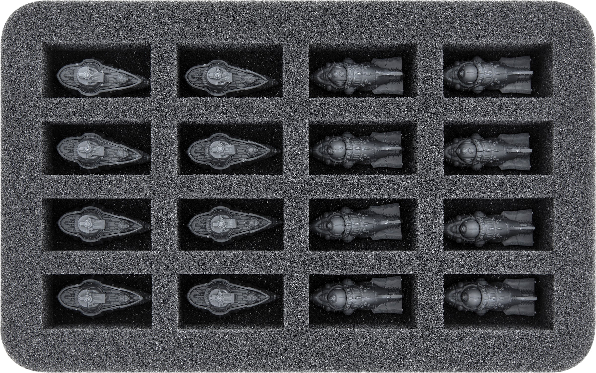 - 1 Half-Size foam tray with 12 compartments for e.g. Copernicus Class Heavy Cruisers, Merian Class Drone Frigates (HS035A044)
