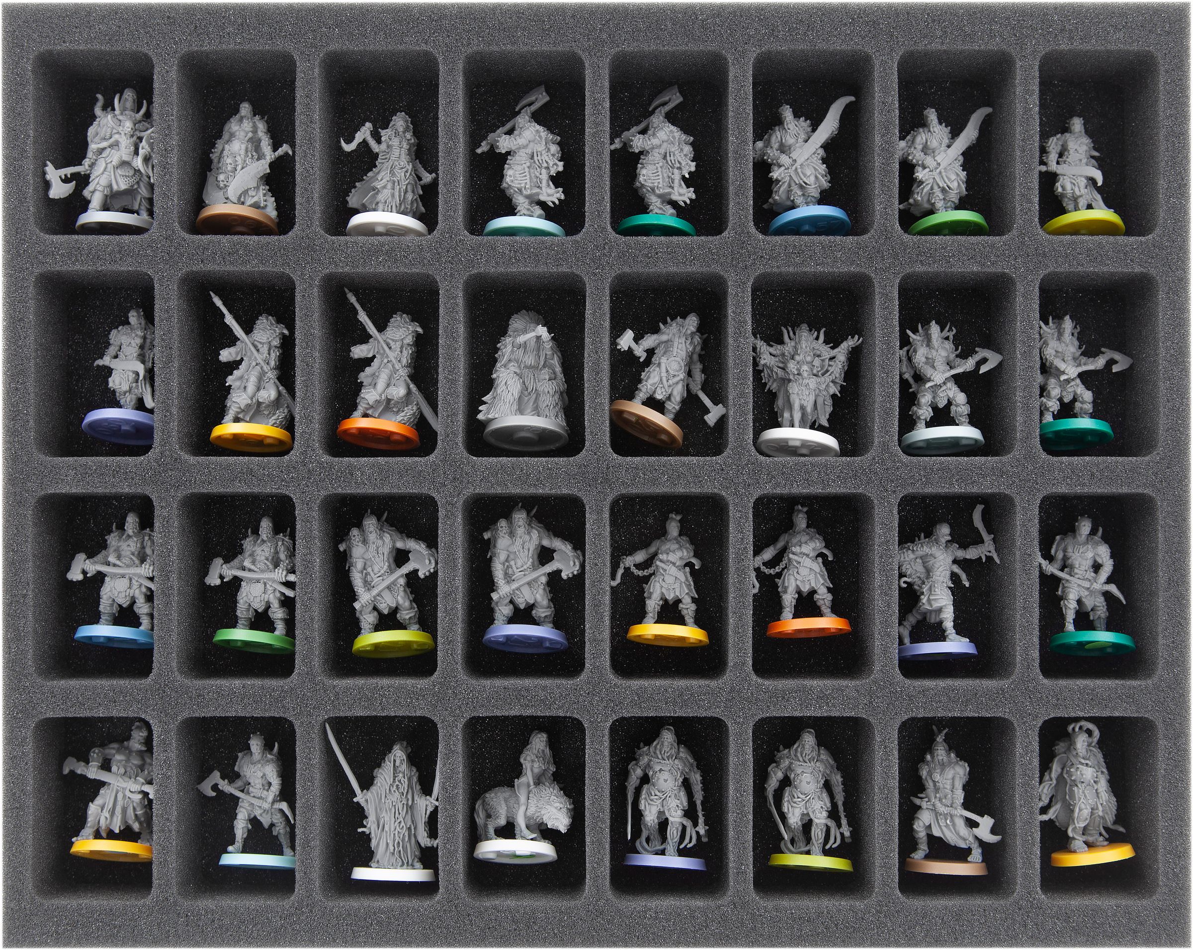 - 2 foam trays with 32 compartments each miniatures on up to 35 mm large bases (FSMEDS045BO)