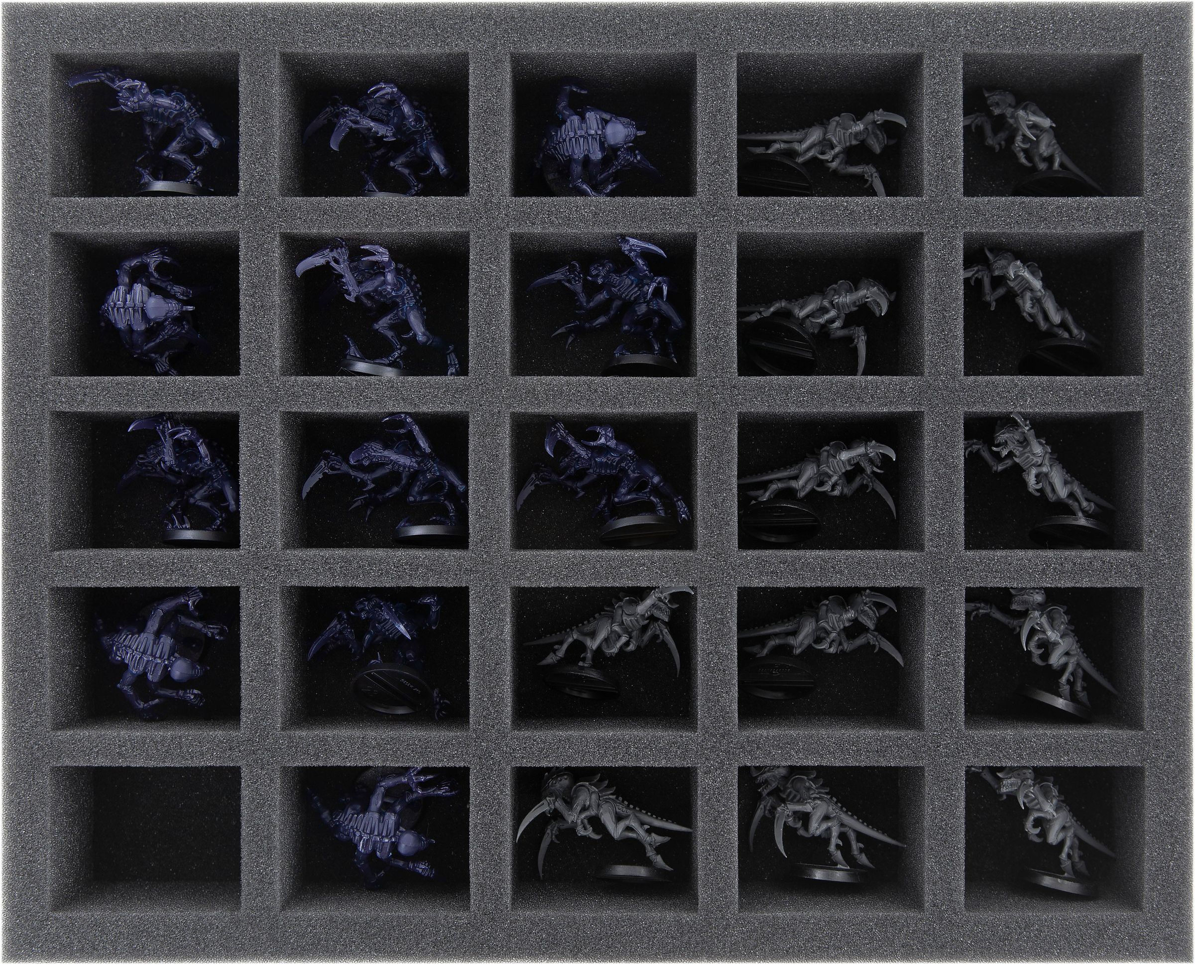 - 1 foam tray with 25 compartments for miniatures on up to 40 mm large bases (FSLQ050BO)