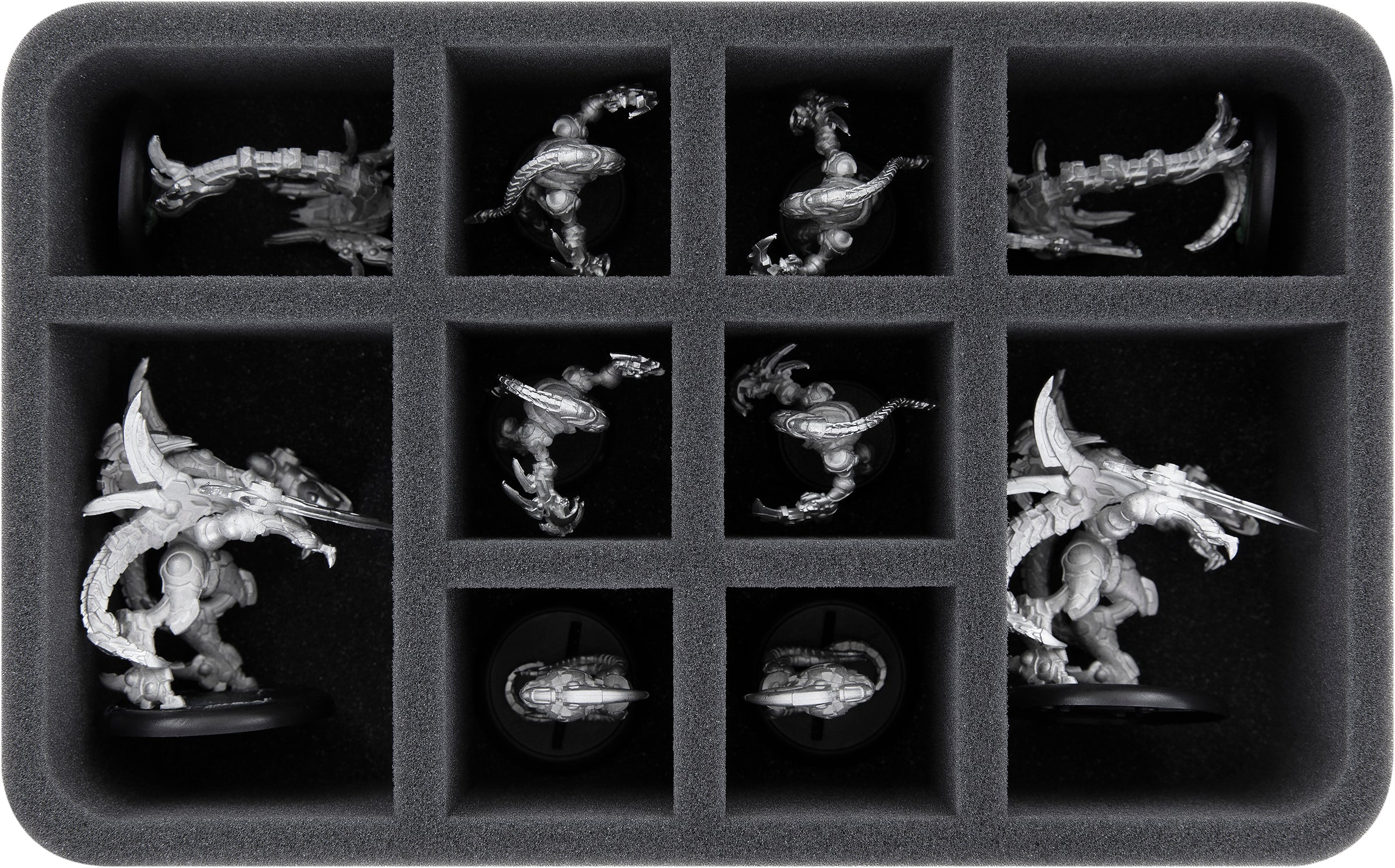 • 2 Half-Size foam trays with 10 compartments each, for Warjacks, Small and Medium Base Miniatures (HSMFAH070BO)