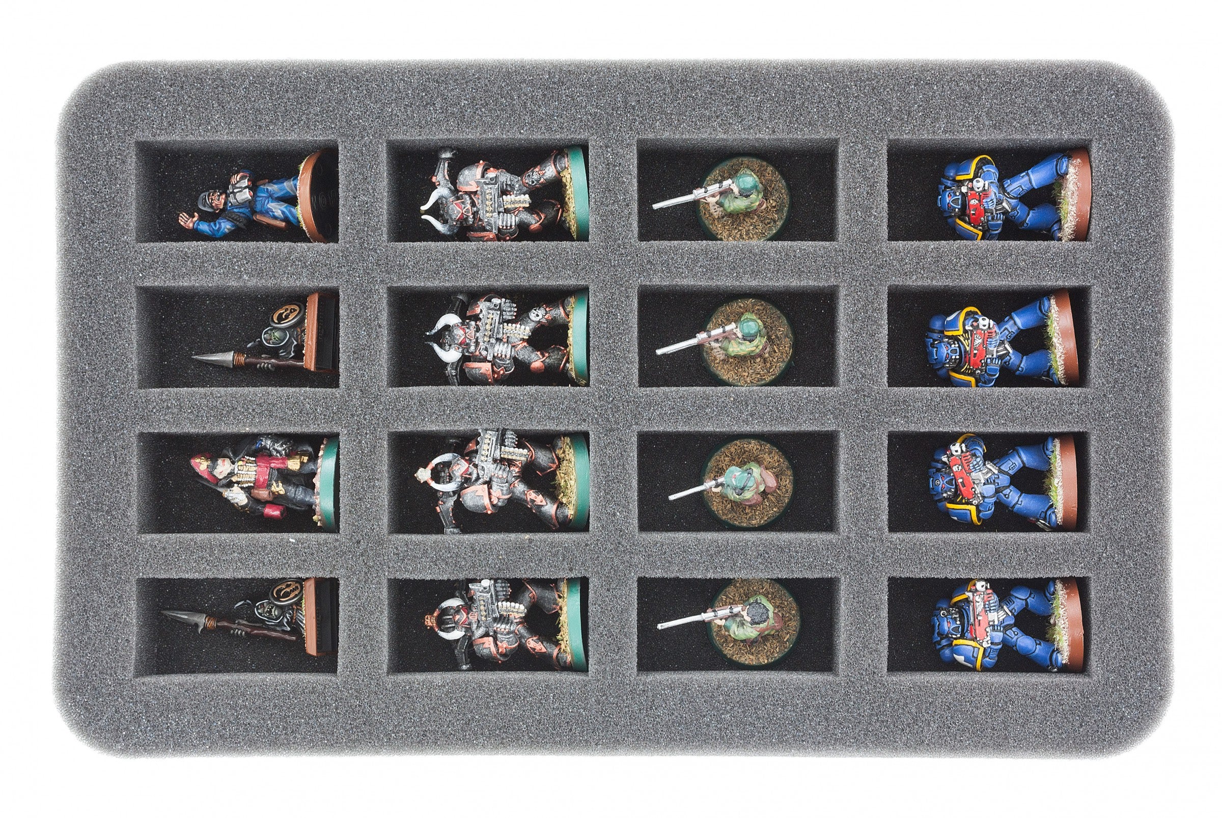 - 2 x 35 mm foam trays stores up to 16 miniatures each