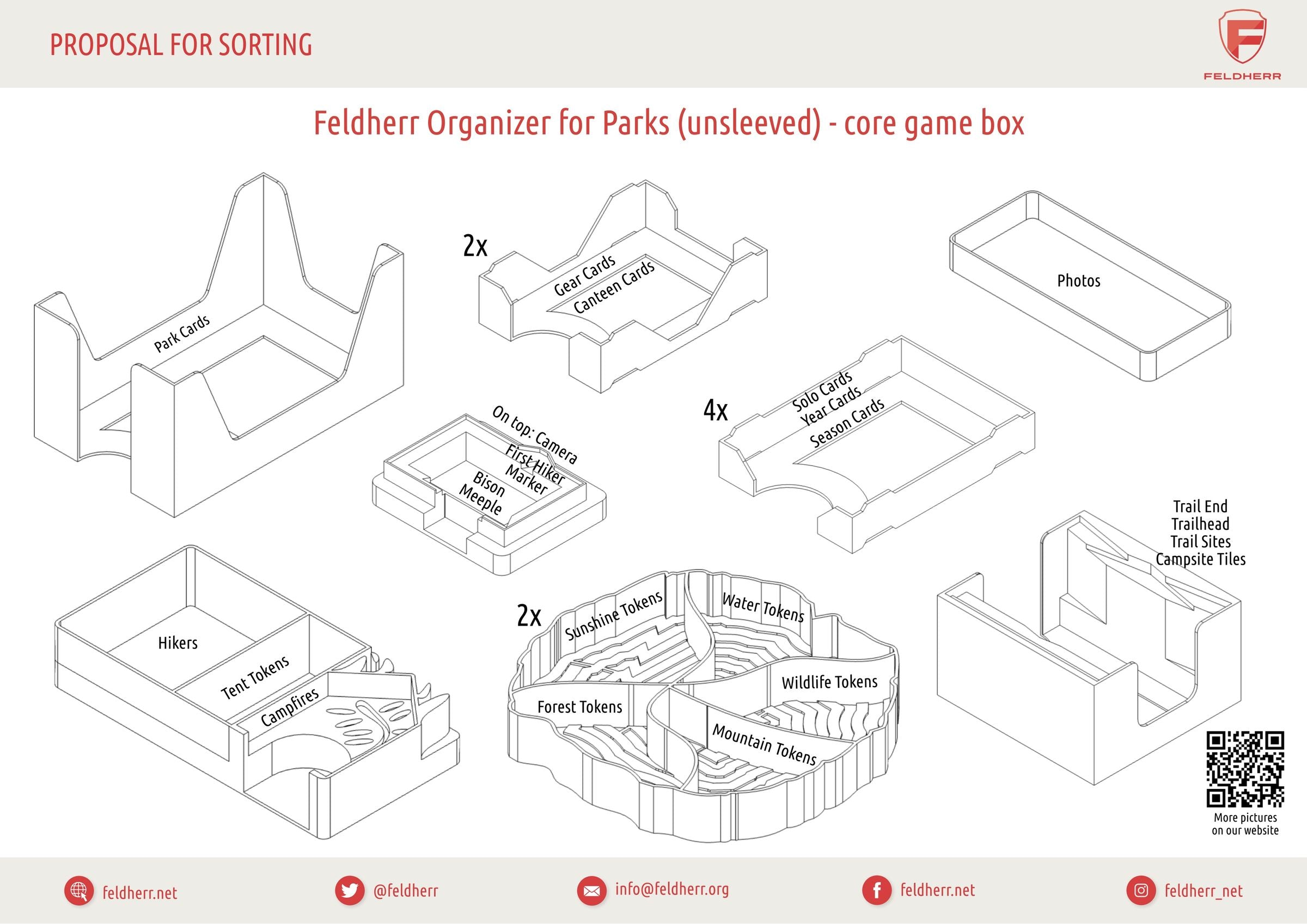 - The Organizer is designed for cards without protective sleeves. More space for sleeved cards is available in the Feldherr Organizer for Parks ORG205.